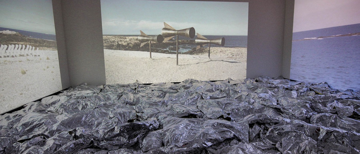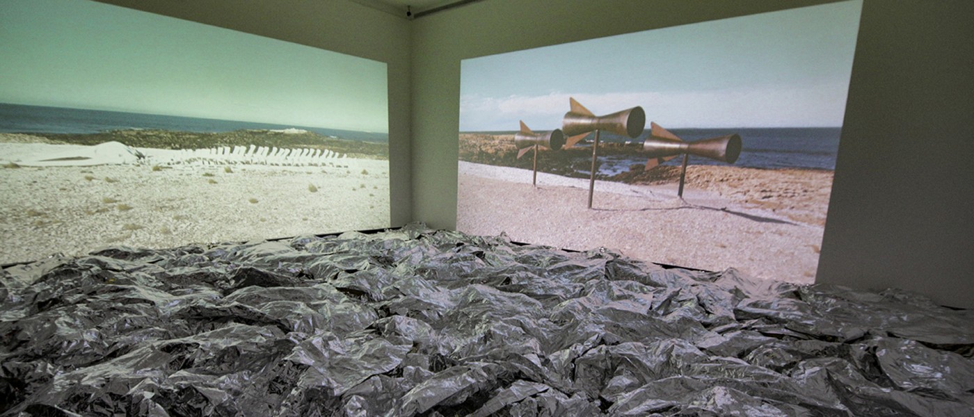 He leaves a mark in the landscape and installs a new sonority. He turns us into participants through a video that, in synchronicity with the real time of the audience, is projected elsewhere hundreds or thousands of kilometers away. He builds a legend bound to challenge time and render continuity to his work.