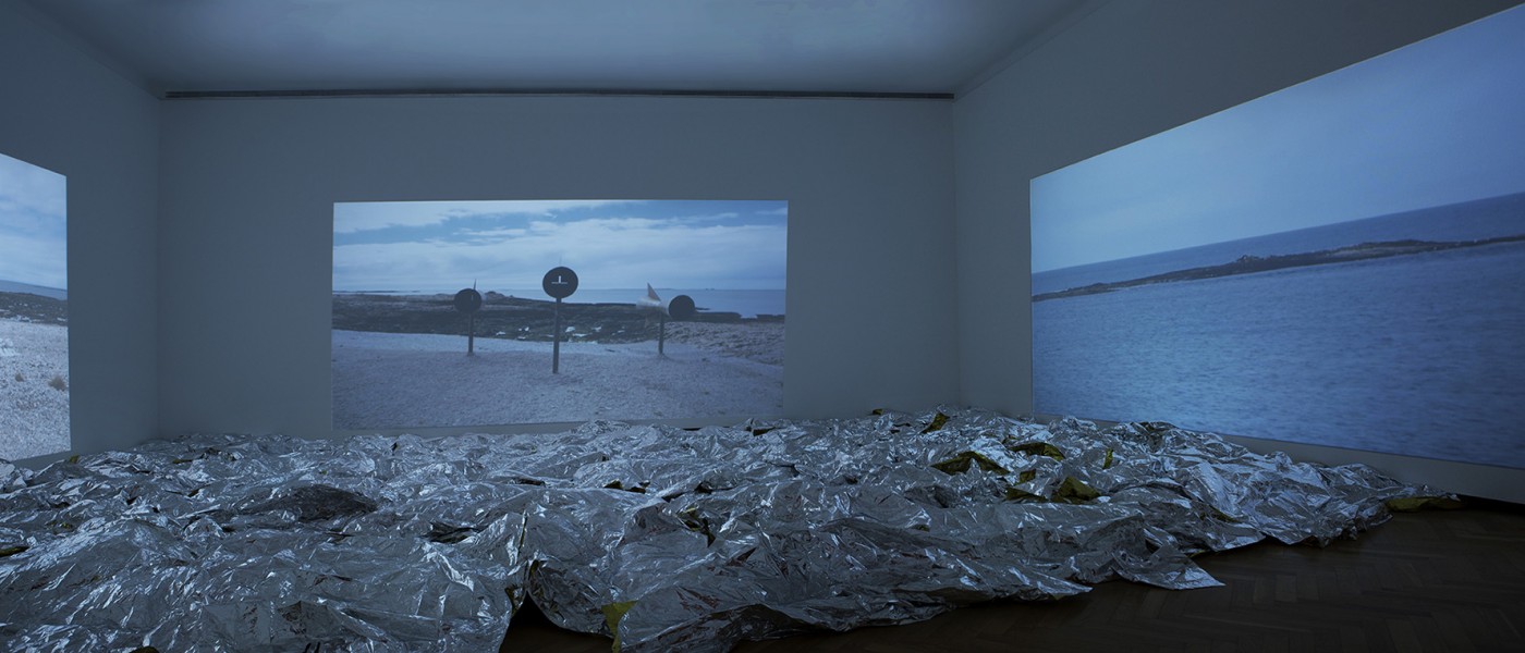 He goes from intimate installations in closed, absent spaces, oftentimes abandoned or derelict, scarcely populated by everyday objects of an austere materiality, to the immensity of the open space.