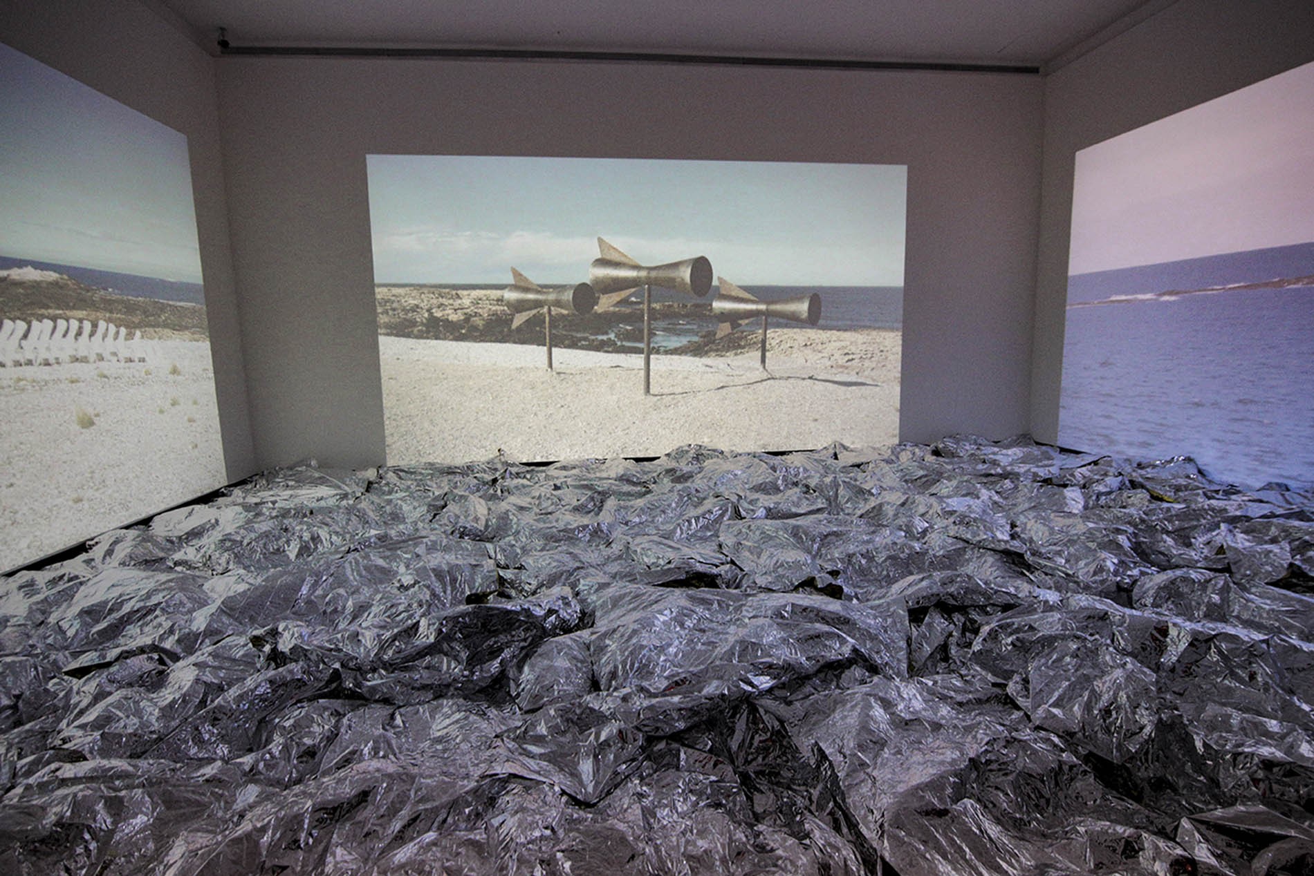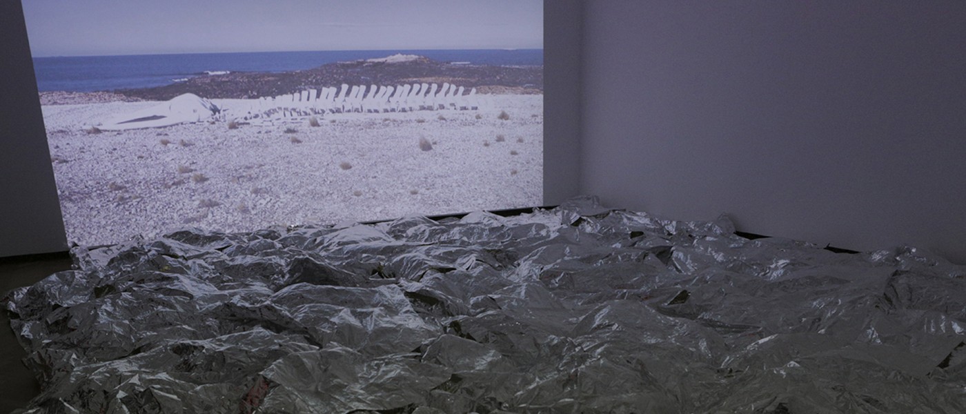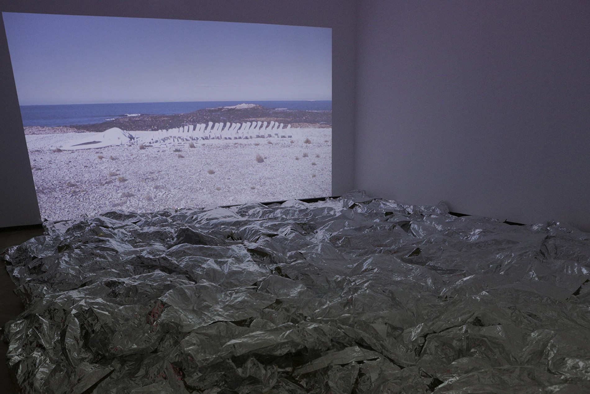 Within the framework of BIENALSUR, Boltanksi made an exploratory trip to Patagonia, where he found the site that could capture the winds and the infinite dimension of the horizon stretching among the sky, the rocks and the sea. The skeleton of a whale appeared there spontaneously as part of this experience.