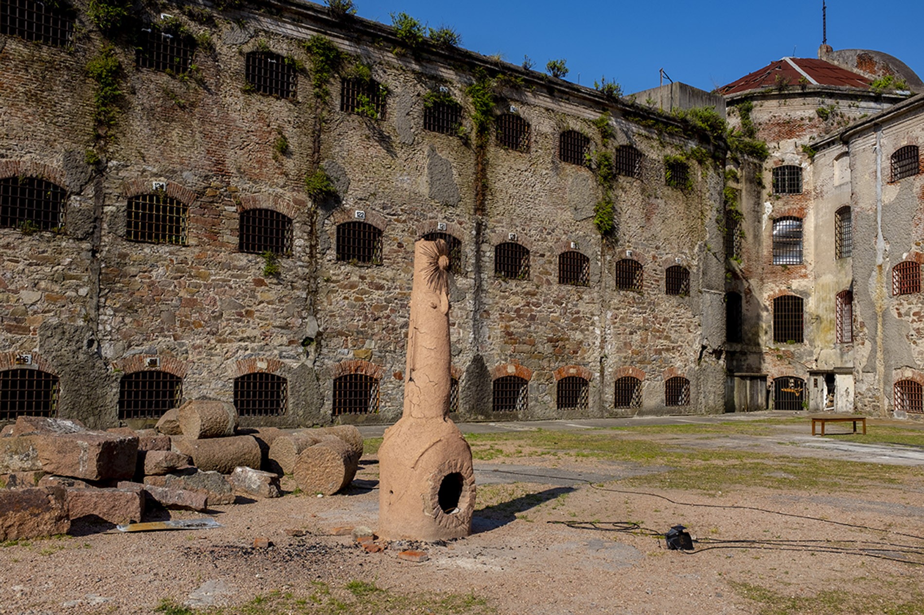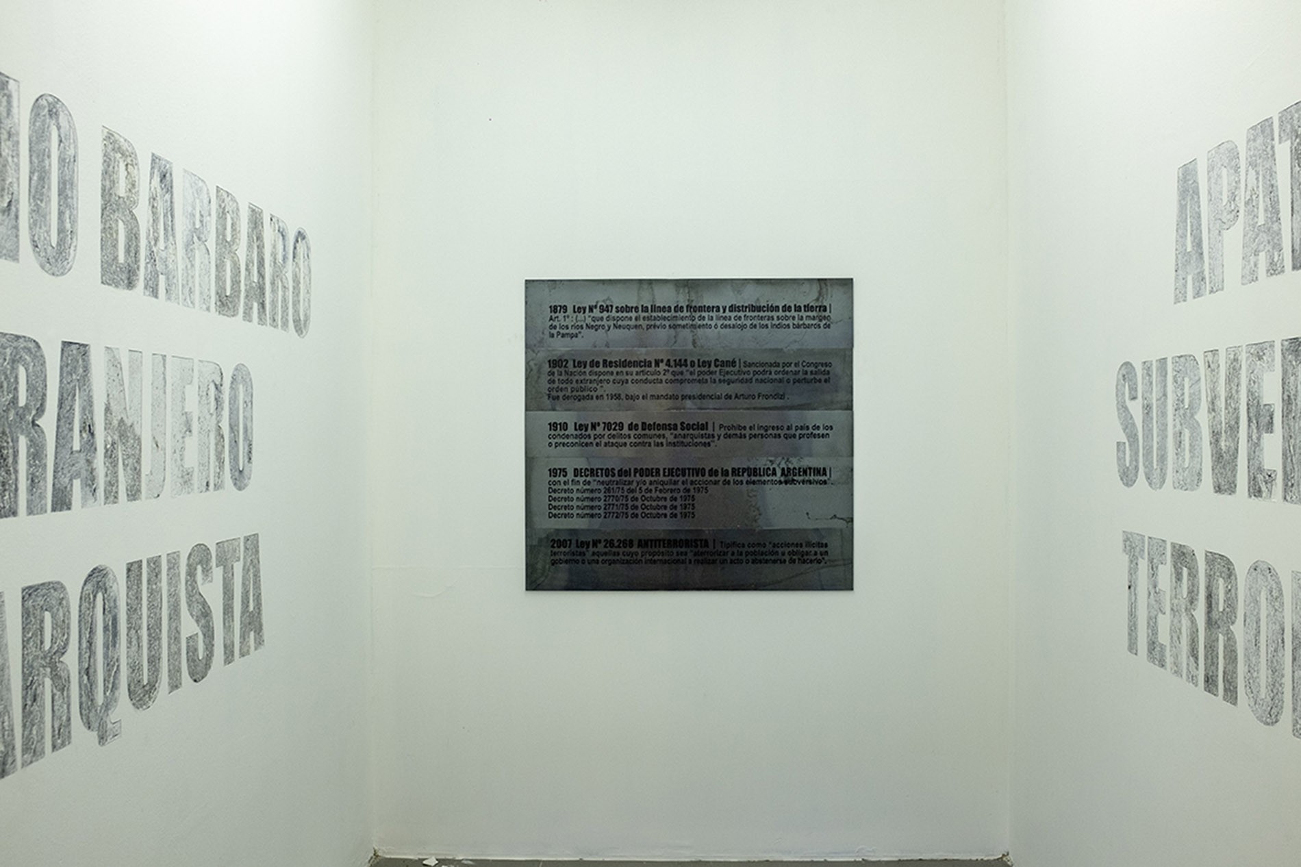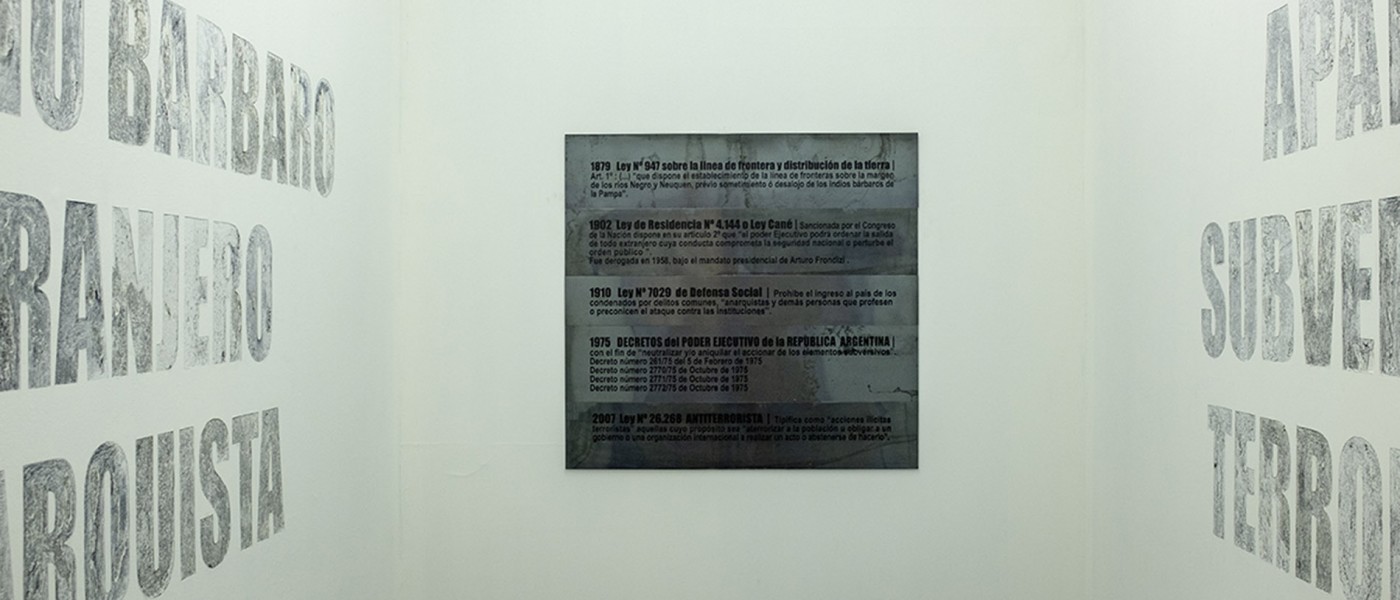 Urgent Memories seeks to reconfigure this space, developing an archeological investigation from the body. Bernardo and the Machi Jorge Quilaqueo perform a dance, inviting stones to seek the sound that preceded words, tensing the latter’s written form as something that arrived with the conquest, a bureaucratic instrument. Gabriel builds a bread oven and a totemic figure from clay, a throwback to the first peoples of the Argentine north, stoking the flames of the relationship between class and race: a testament to survival as much as to continued subjugation. Cristina chips away at the layers of the walls to lay bare the historical construction of the other as a palimpsest, using legal texts to denounce the genocidal violence of states in a racist and cyclical endeavor that is still current today.