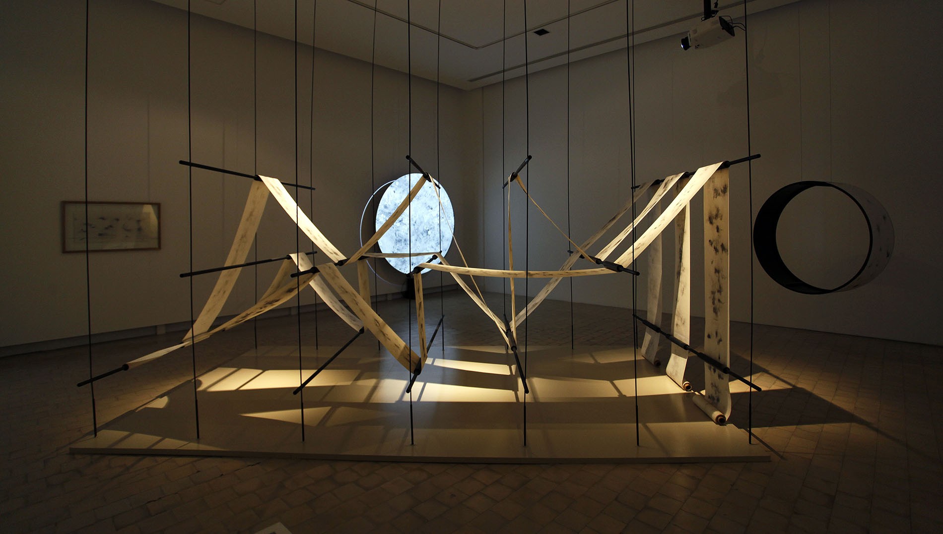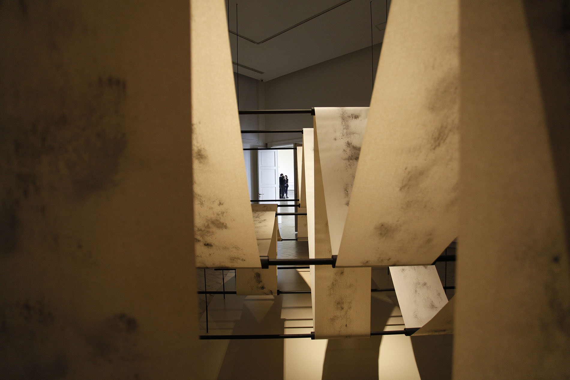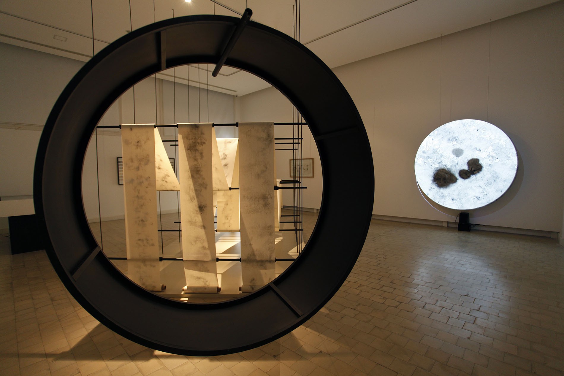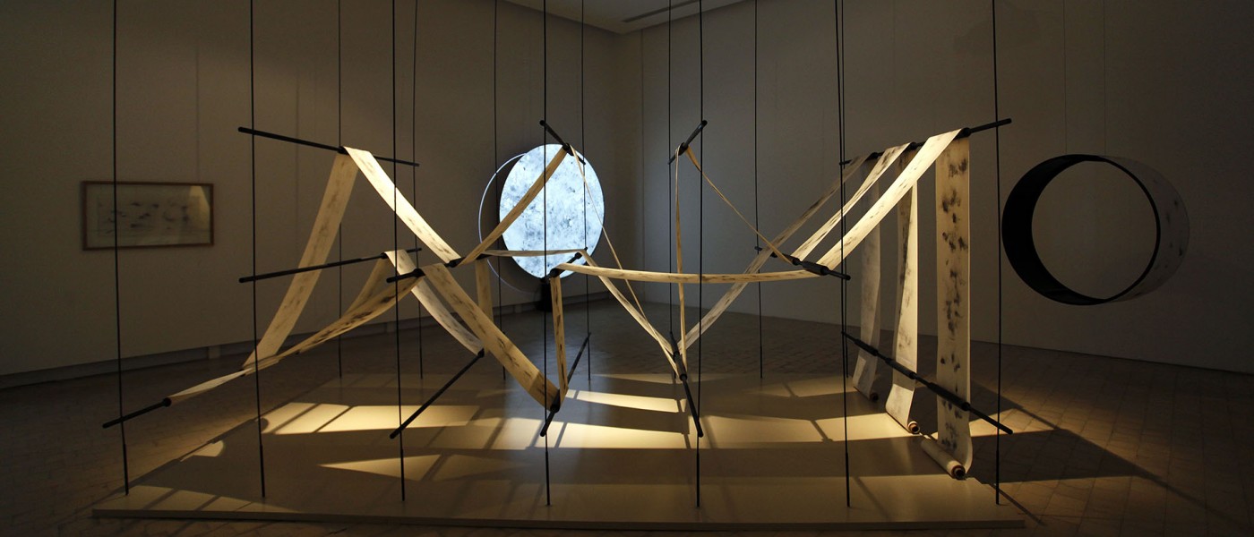 Shono combines words and writing, and in turn, the latter with drawing. It is for this reason, and because of the variety of resources he usually works with, that he chooses for this series charcoal and paper, two materials that are both simple and ductile, to experiment with them not only on the plane but also as volume. This is the origin of The Silent Press, which asserts itself with its still presence, tense and calm at the same time, as if it contained the dynamics of a constant flow of movement. A light metal structure supports the continuous flow of a roll of paper whose writings (texts, drawings?) are illegible and, possibly for this very reason, hypnotically draw our attention. The subtlety of the charcoal marks - random, automatic, accidental - on each of the clear surfaces where the different works that make up this Saudi artist's exhibition are displayed, becomes an enigma that challenges the imagination and, along with it, the possibility of relearning to read in a different manner, discovering codes and clues that lead us away from what we know and open up other paths to understanding and reflection.