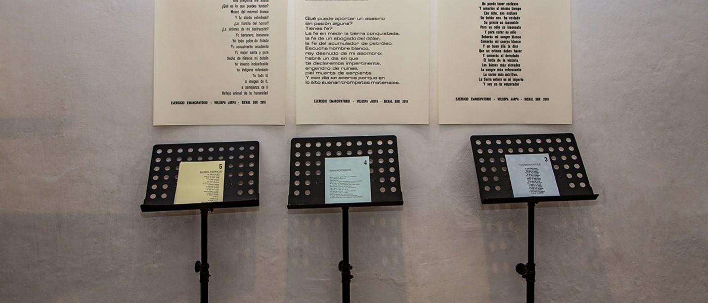 *On the basis of the curatorial hypothesis of Emancipating Opera by Voluspa Jarpa, the exhibition was held at the MNAV of Montevideo, thus creating a simultaneous liaison between these spaces within the cartography of BIENALSUR 2019.