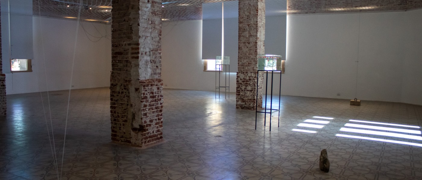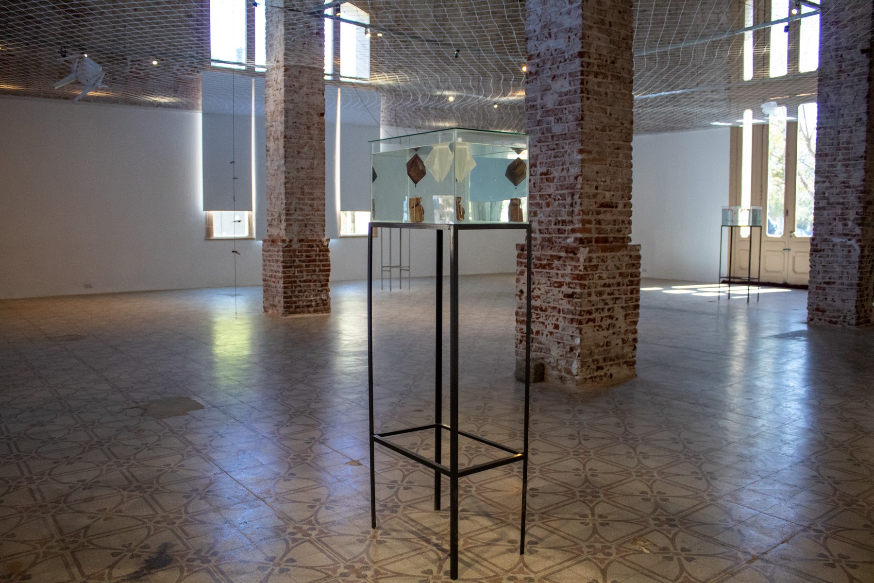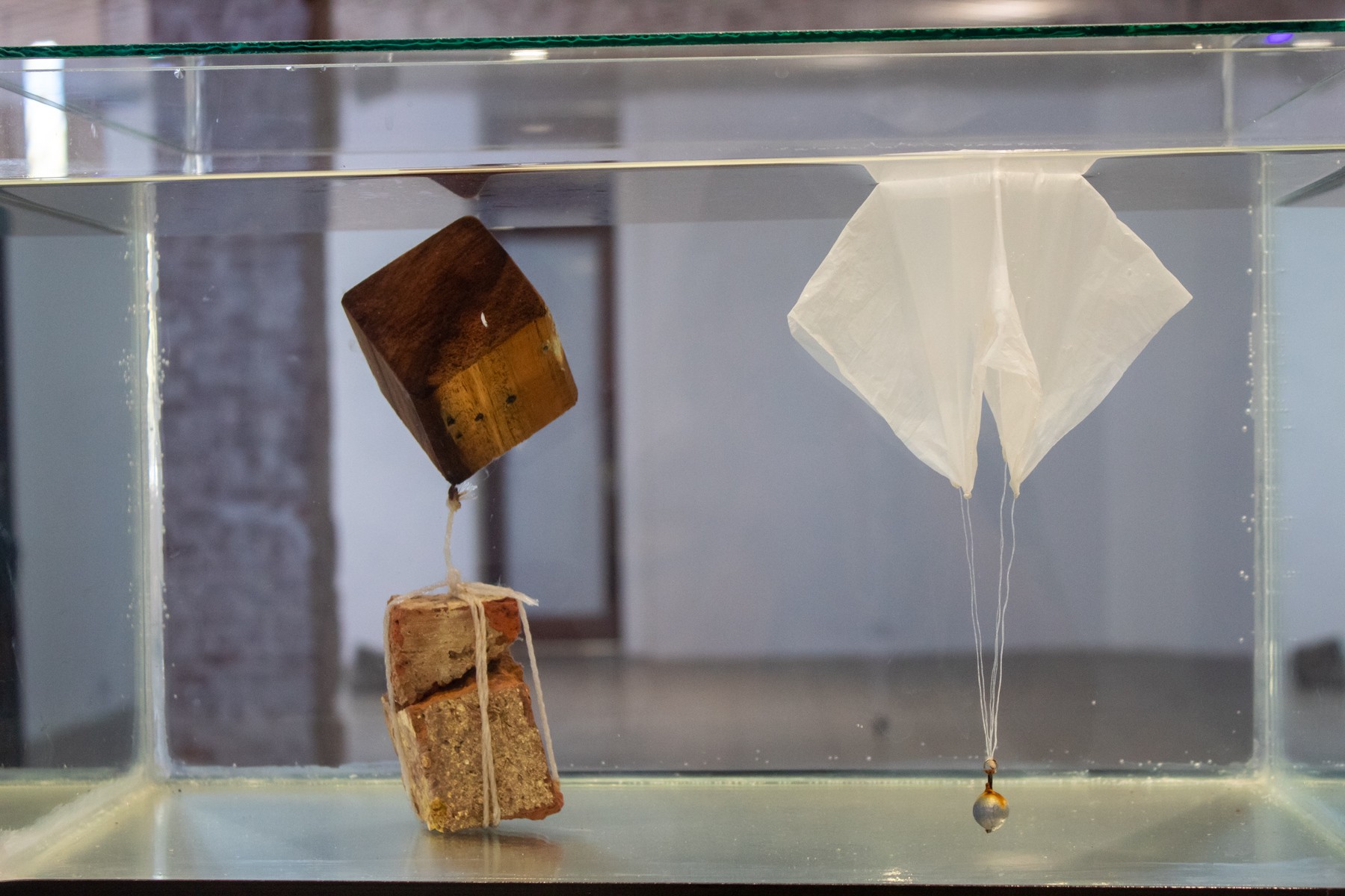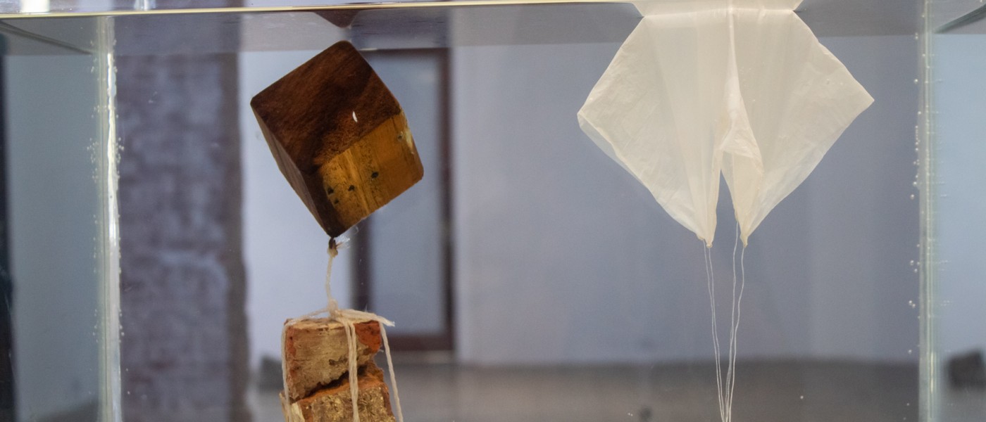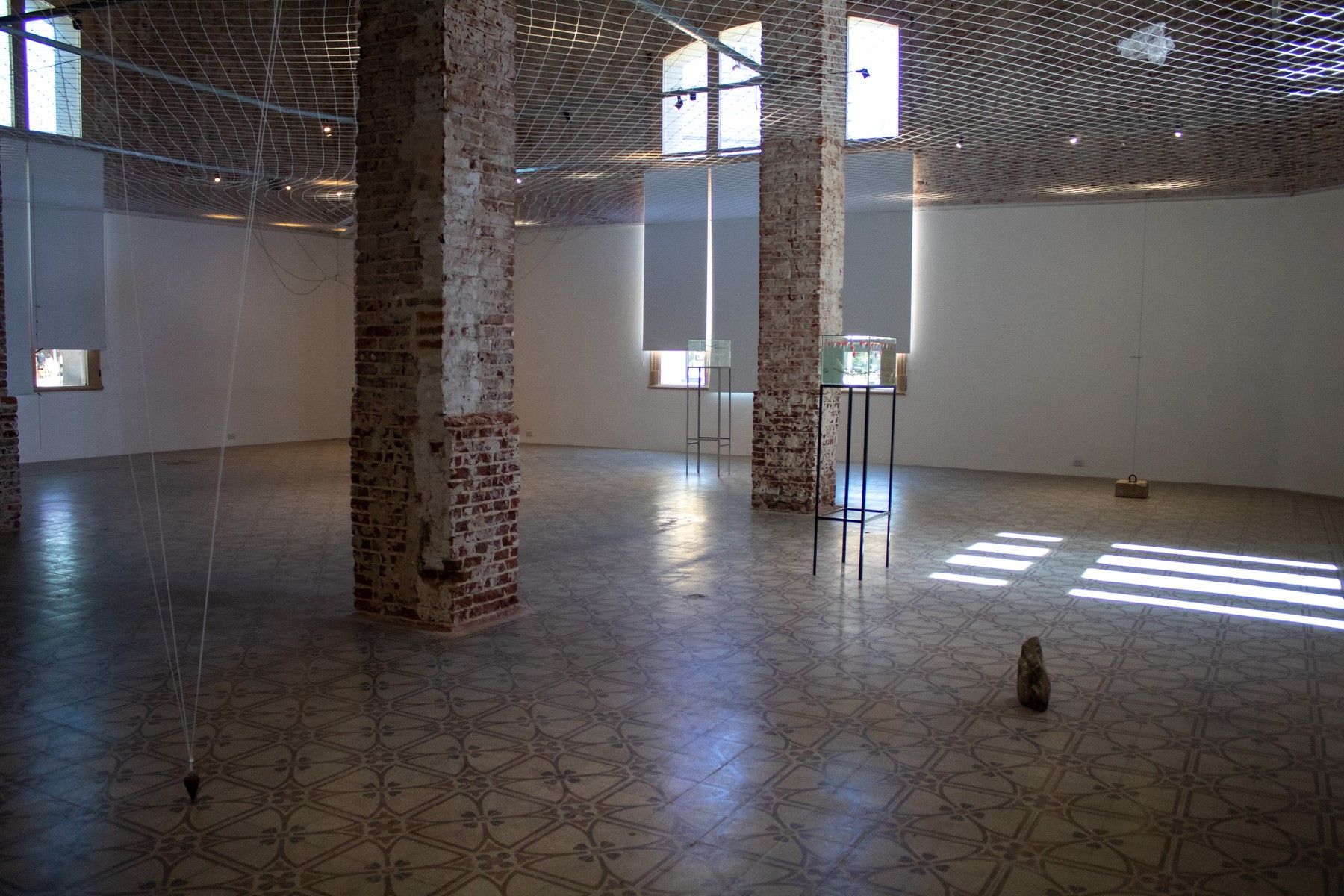 The system of relations presented here is not intended to replace the theory of gravity with the theory of suspension. Its aim is not to open up fields where a hypothesis is refuted, confronted or confirmed, but to conduct experiments that reveal signals about space. Nicolas Robbio's work delves into a state of affairs in which our current perception is reasserted and reformulated on the basis of a set of operations, relations, and links. Curved and straight lines, like domes or pyramids, are drawn by the very weight of things, or better still, by the possibility afforded by the force of gravity on suspension. In this attempt to present a series of situations with different materials and elements, elevation and suspension are examined as cumulative forces. These practices produce scenes of a fragile stillness given by the unstable equilibrium, a suspended time that is entered stealthily so as not to disturb a stability that hangs by a thin thread, that rests on the edge of the ledge, and that can be shattered with just a snap of the finger.