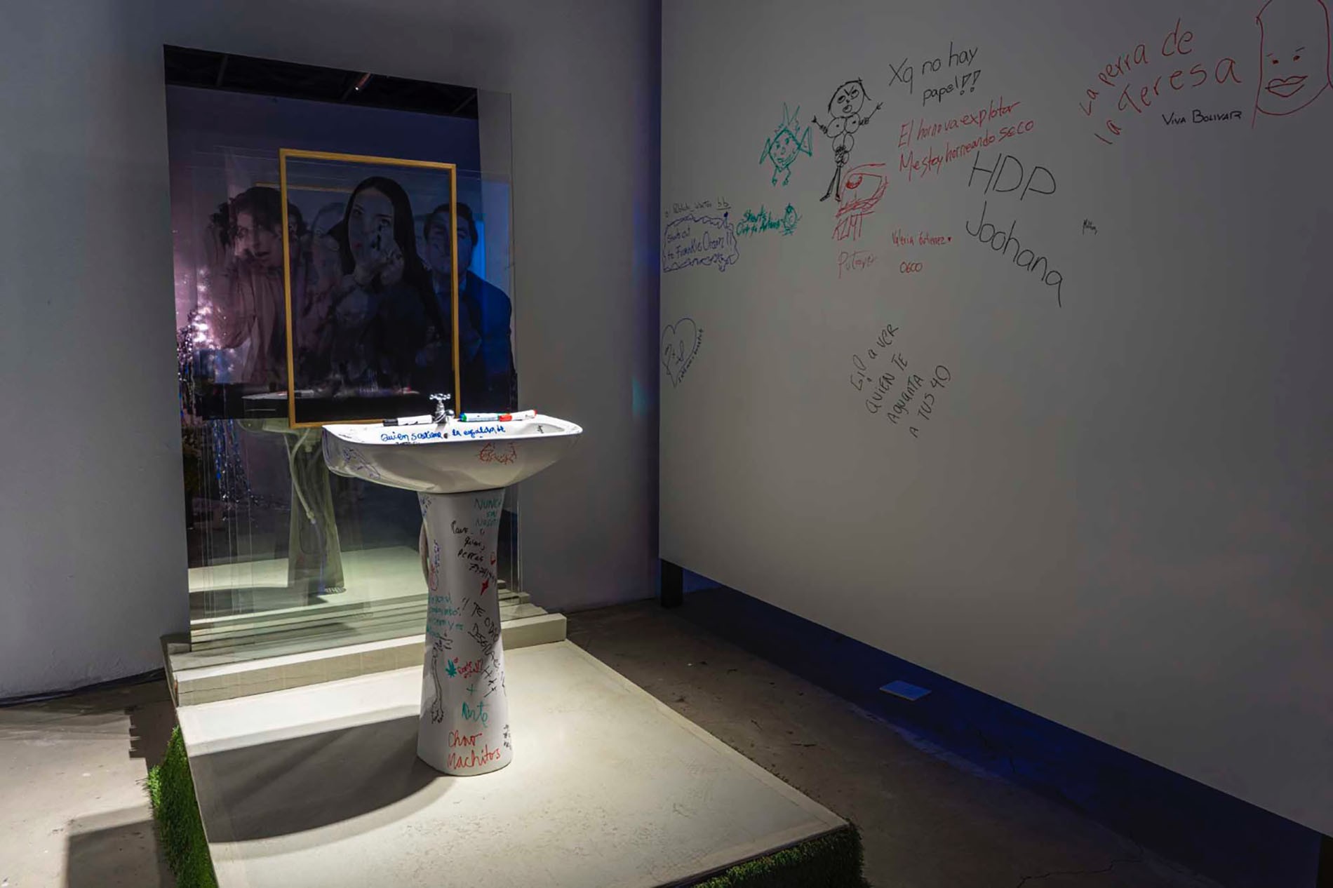 This exhibition offers a collective exploration of the significance of celebration within the Bolivian context, drawing connections with the perspectives of foreign artists. It begins with a collection of pieces by artists who champion celebration as a way of inhabiting space with a unique architecture and ecology that emphasize enjoyment and collective revelry. Simultaneously, they recognize that celebrations can be a utopian realm of resistance, but they can also harbor elements of colonization and violence. Here, the crossing of boundaries and the disruption of conventional time coexist with the regularity of cycles, rules, and codes. The memory of Bolivian celebrations has bequeathed practices that evoke a history encompassing resistance, colonization, migration, and projects.