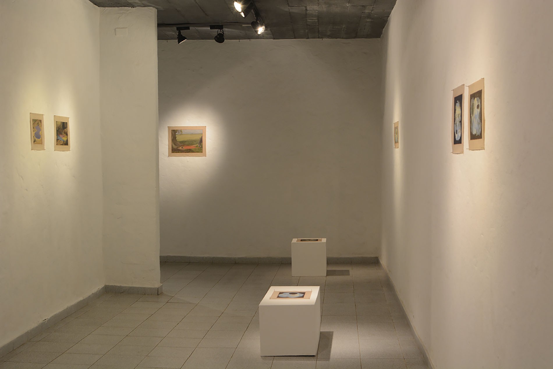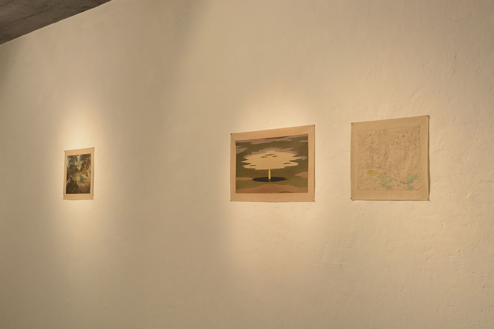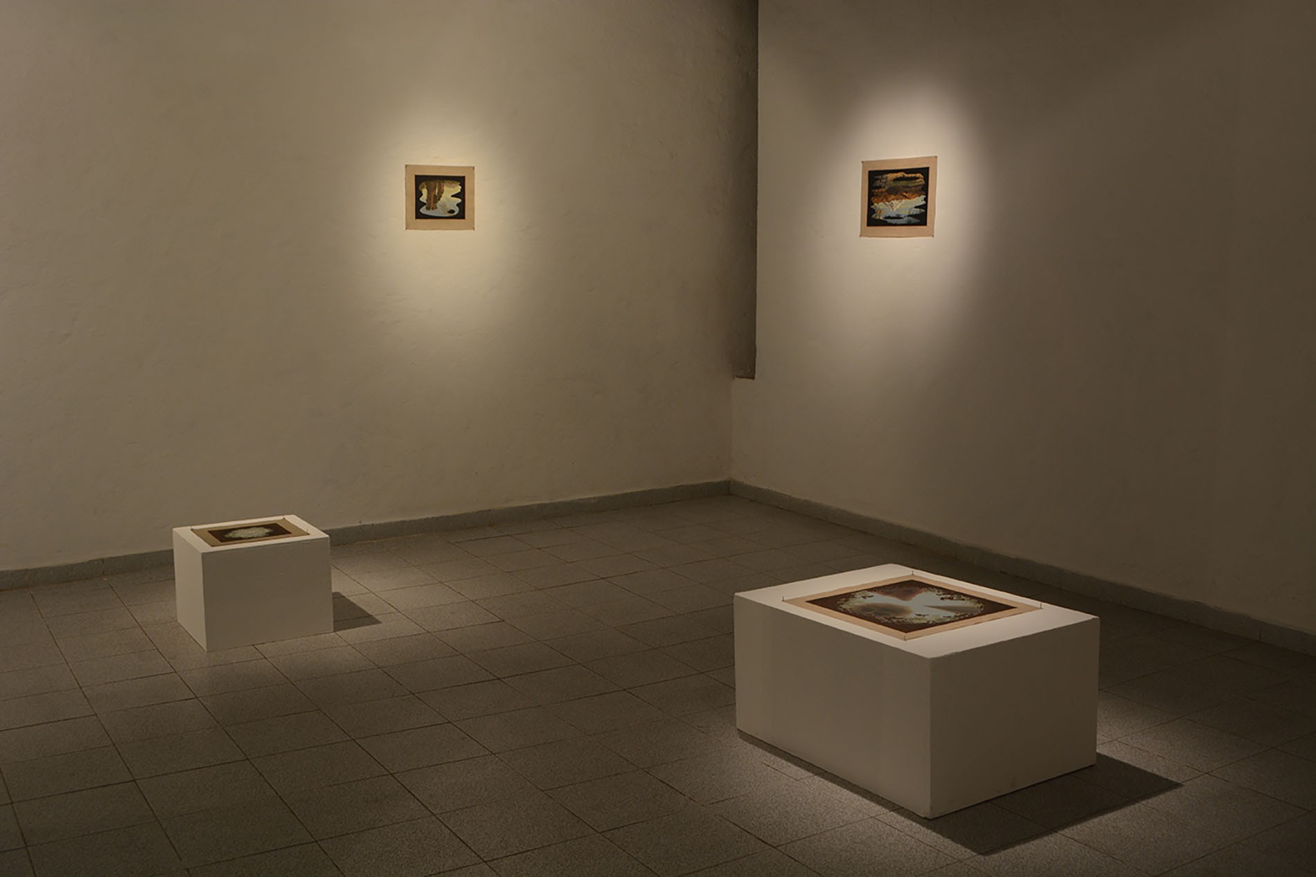 When scrutinizing puddles, the gaze encounters the flora and fauna, what is reflected and floating, and our own image immersed in these elements. Gómez Canle recreates them through the poetics of his characters: the autobiographical beast (the artist, the observer), the geometry, conceived and developed by humans, and the mountain, a kind of animation of geological time, from a different era.