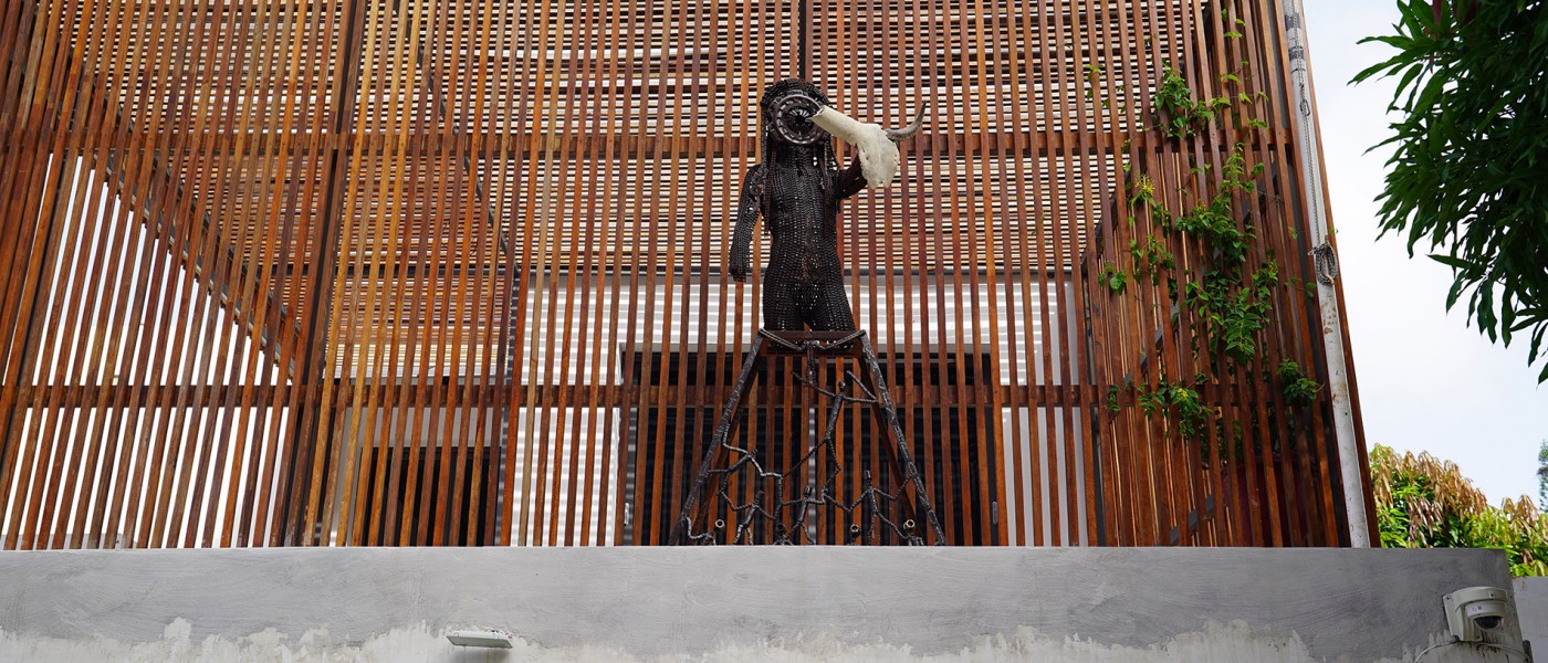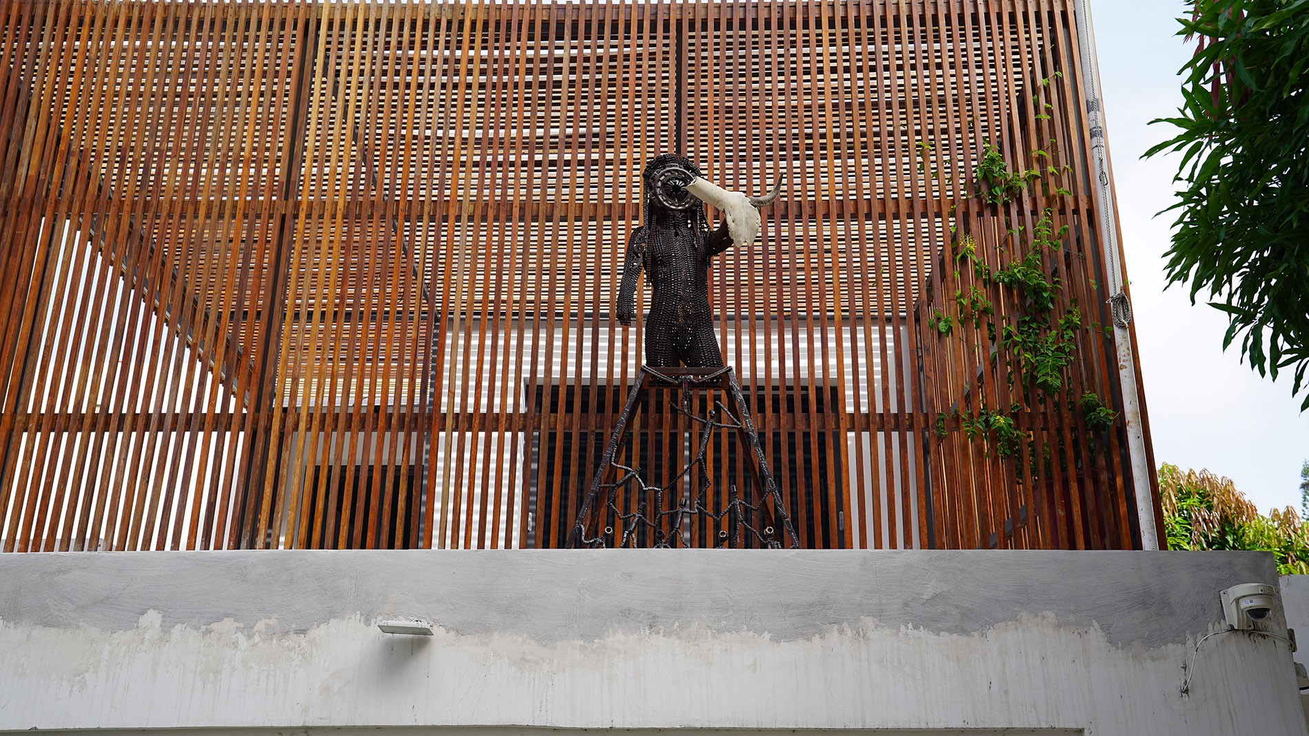 The proposal, now in its third edition following previous editions in Valparaíso, Chile (BIENALSUR 2017), and Córdoba, Argentina (BIENALSUR 2019), consists of a collective project in the form of a workshop. Such a workshop facilitates the creation of objects, sculptures, installations, interventions, costumes, or performative situations that will be temporarily placed at the Instituto Cervantes of Dakar and in the surrounding public space.