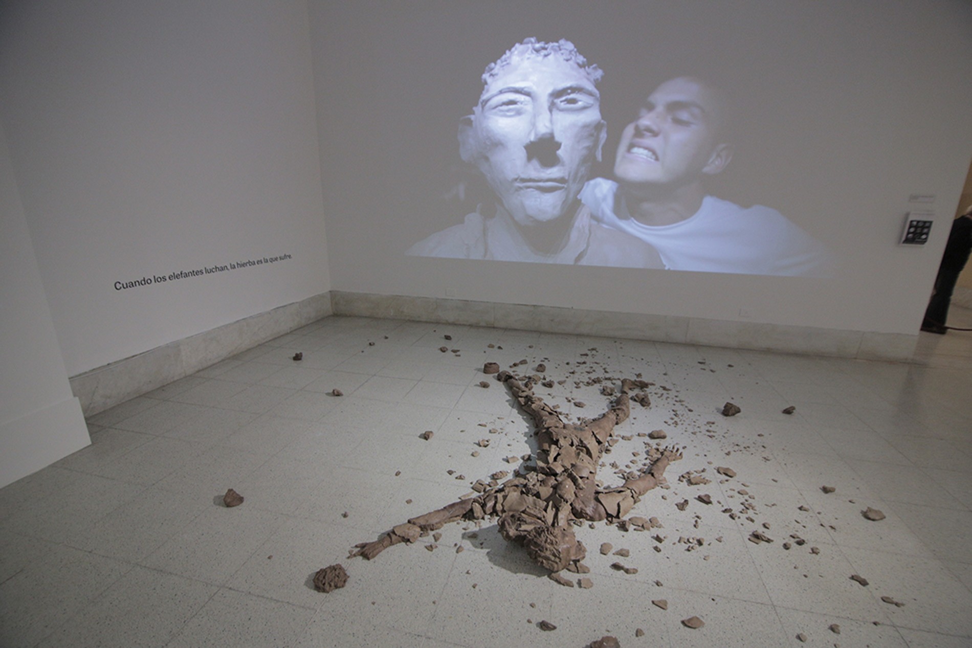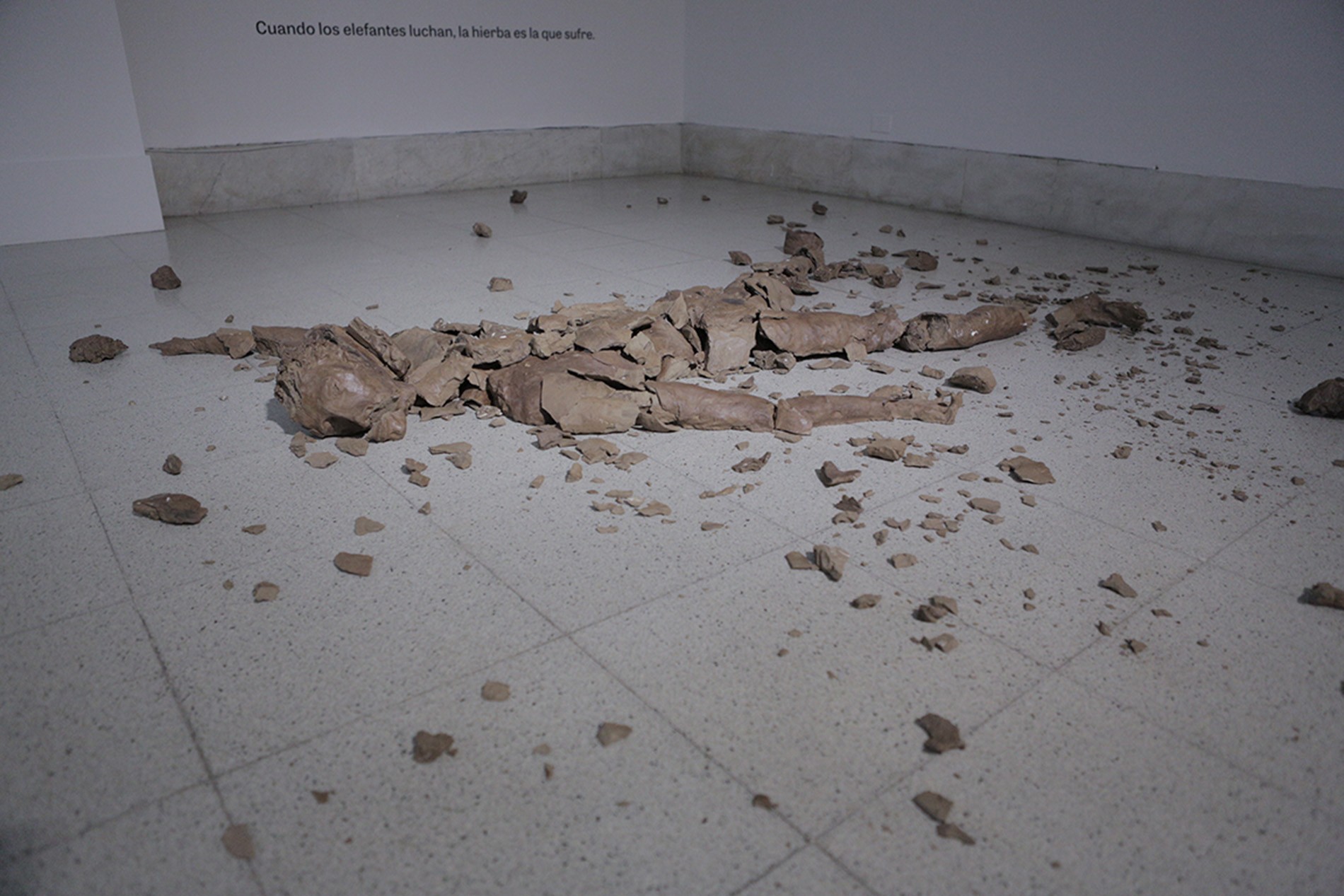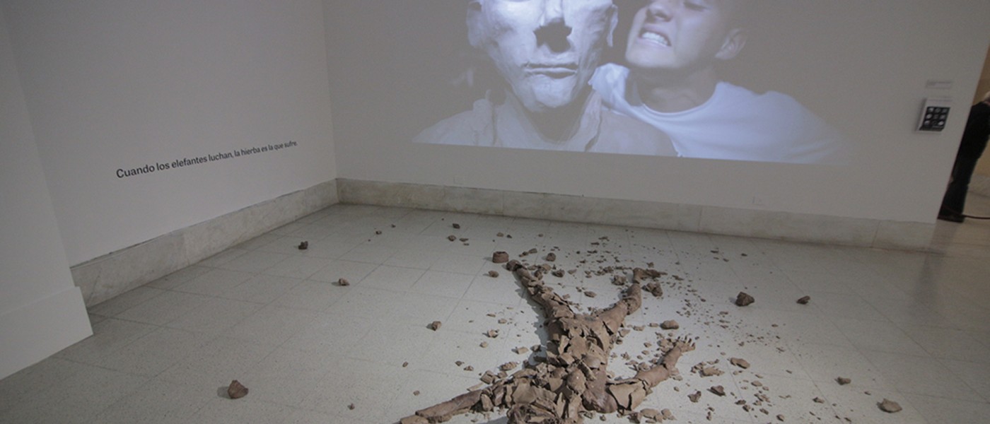 Es interesante poder ensayar a partir de proyectos de arte contemporáneo ciertas interferencias dentro del relato marco que provee un museo de historia nacional. Hugo Aveta propone intervenir este relato con una video-instalación donde se observa un contrapunto entre la materia, como ruina y la imagen como testigo de una acción. Construye un hombre de arcilla que luego demuele a golpes. Aquel cuerpo registrará las marcas que remiten a las fatalidades naturales, políticas y sociales a las que el hombre se vio sometido. El video de la acción se muestra en contrapunto con los restos de ésta, testigos de la fatalidad, dejando abierta, sin embargo, la posibilidad de una reconstrucción desde esas ruinas que alumbrarán un hombre nuevo dentro de un proyecto nuevo. Entre tanto, Ivan Grilo sentencia con una placa de bronce que yace sobre la bandera blanca que remeda la que identificará a los negros: No fue izada la bandera, pero ya nos indica la dirección. Ambos trabajos proponen una relectura de la historia poniendo el acento en el sujeto anónimo, en esos silenciosos actores capaces de alumbrar nuevos futuros.