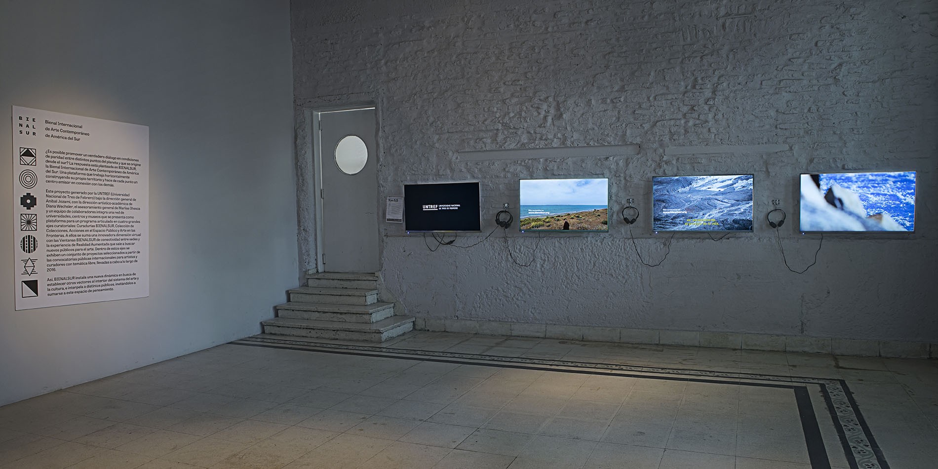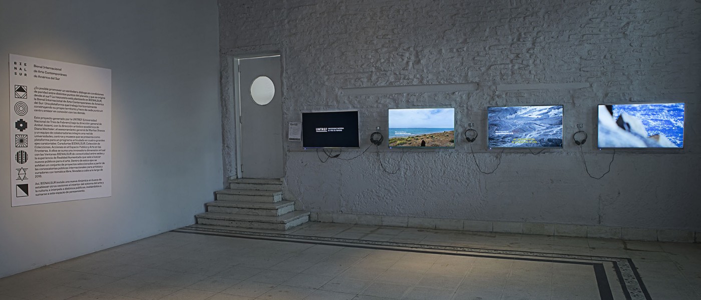 Cuatro pantallas reciben al espectador. En ellas, de manera diferencial se sintetizan las experiencias exploratorias de cuatro artistas en nuestro espacio natural. Christian Boltanski (FRA) llevó a cabo en Bahía Bustamante (Chubut, Patagonia Argentina) un recorrido por la soledad de esa geografía para instalar allí unos dispositivos sonoros que se activan con el viento para establecer –a partir de esas sonoridades aleatorias- un diálogo posible con las ballenas. Angelika Markul (POL), para su proyecto Memoria del glaciar, viajó al Perito Moreno (Santa Cruz, Patagonia Argentina) y desarrolló una reflexión visual en torno a la historia de esas enormes masas de hielo y su encubierta fragilidad. Charly Nijensohn (ARG), con su proyecto El ciclo de la intensidad, transitó el Salar de Uyuni (Bolivia) para poner en cuestión la posición del hombre ante la inmensidad de la naturaleza y Eduardo Srur (BRA), con su proyecto Pets, llevado a cabo en diferentes locaciones a lo largo del río Paraná y en la boca del Riachuelo, desarrolló una experiencia destinada a llamar la atención sobre la polución de las aguas y la necesidad de aprender a preservar este recurso.