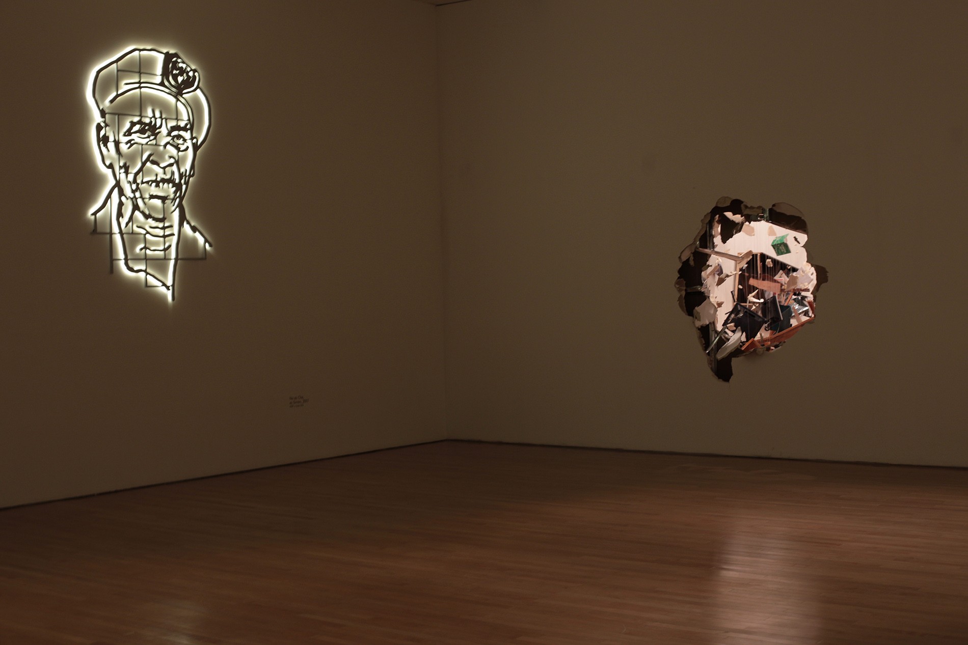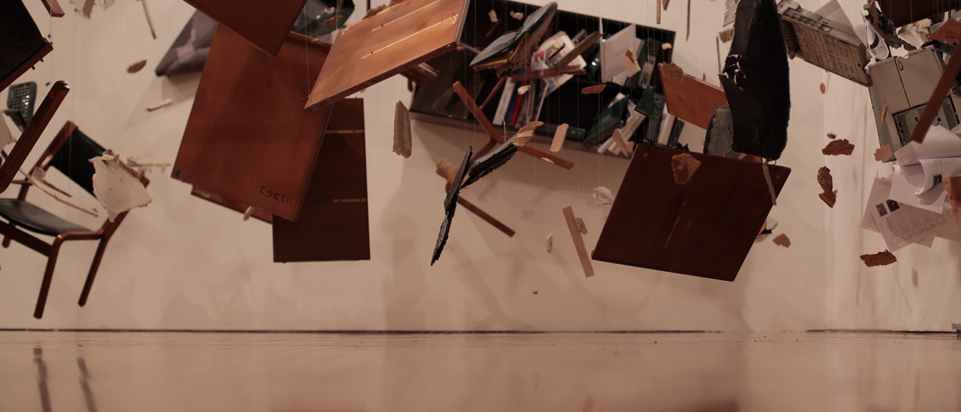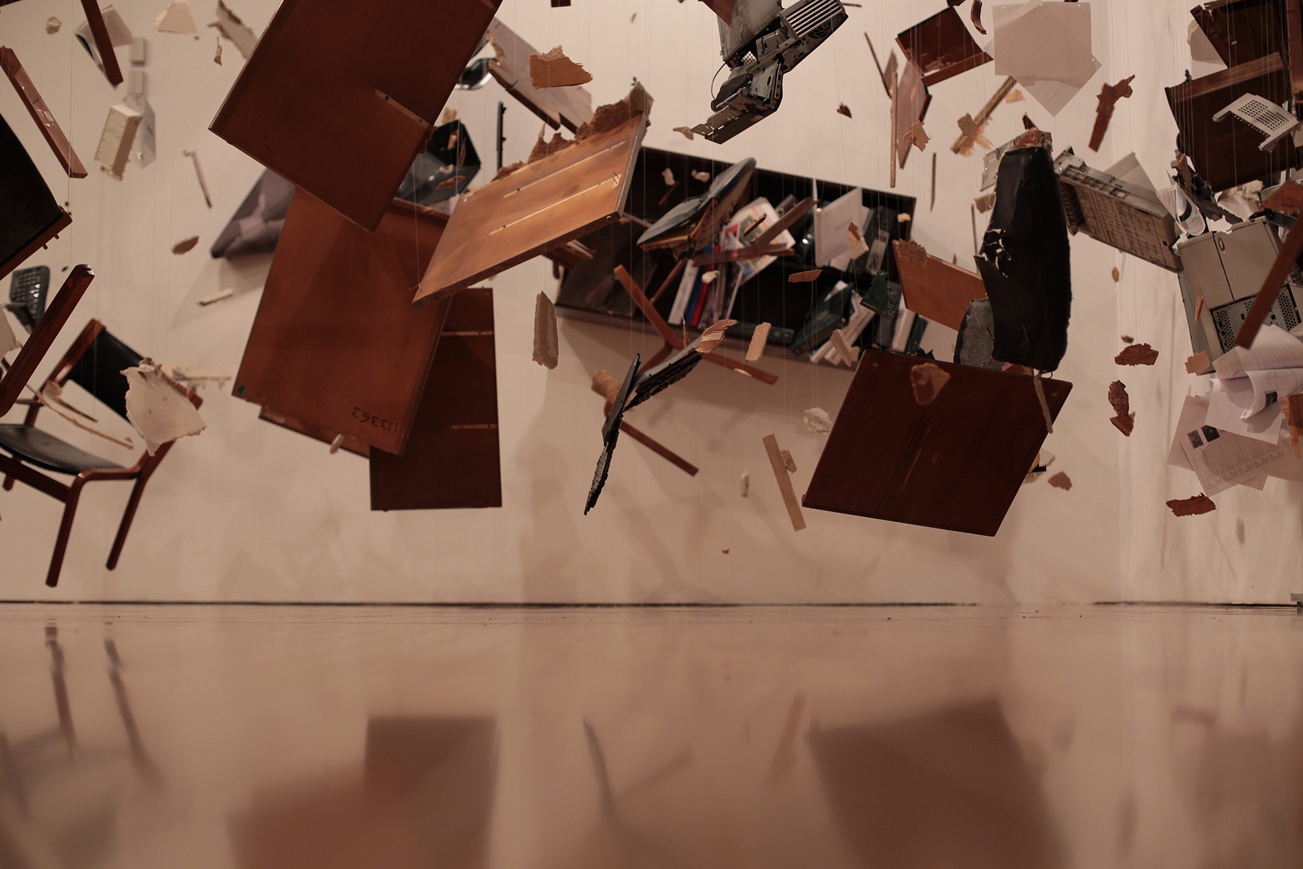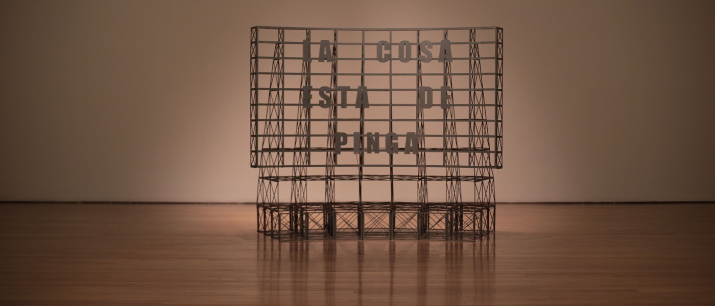 Durante casi veinticinco años de trayectoria, Los Carpinteros han experimentado casi todas las disciplinas –escultura, fotografía, dibujo, instalación, video– utilizando una enorme diversidad de materiales: madera, ladrillo, papel, metal, plástico, concreto, tela, entre otros. En todos los casos, sus obras desafían al público provocando un auténtico jaque intelectual, un golpe a su arquitectura mental, lógica y racional. Aparentemente, se trata de una cuestión formal, por ejemplo, cuando los artistas manipulan o deforman los objetos.Sin embargo, en la mayoría de los casos, sus obras no presentan realmente ningún cambio físico, simplemente aparecen desplazadas de su contexto o su estado natural. “Todas nuestras operaciones figurativas están reguladas por la convención”, dice Umberto Eco. La ruptura de significado es, entonces, la gran (de)construcción de estos artistas que, cómo no, se han autonombrado ‘carpinteros’ para contradecir –aunque nunca totalmente– la función de un oficio centrado en la producción de objetos útiles. A sus piezas más conocidas –Sala de juntas, Catedral, Clavos torcidos– se suman obras prácticamente desconocidas, como Concreto roto, Bola de pelo o 20 gentes, además de piezas inéditas, como Surround with Sound Your Ass y Tres casi guitarras. La muestra pone también el acento en los procesos de trabajo y experimentación que hay tras la obra de los artistas. La cosa está candela propone explorar la obra de Los Carpinteros desde una perspectiva semiótica y entender toda su producción como un sistema de signos, ambivalente, contradictorio, paradójico y, sin embargo, tremendamente subversivo. El humor es su estrategia.