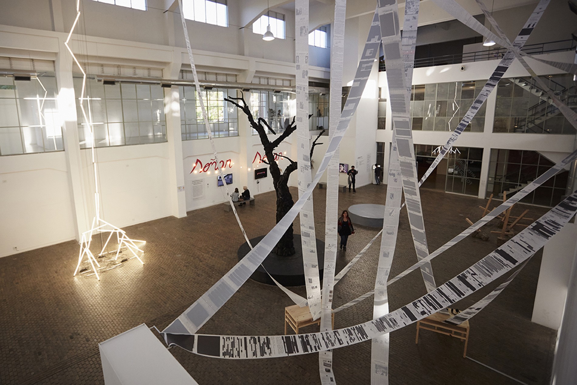 Una instancia en la que las personas se contactan con las memorias del lugar que la alberga. El C.C. Haroldo Conti, ubicado en el predio de la ex ESMA -el contexto a partir del cual la exposición se enuncia- se constituye como un continente de resignificación capital para las narrativas que las obras postulan. Todas las piezas dialogan con un espacio colmado de relatos en tensión; altamente significativo para la historia política argentina.