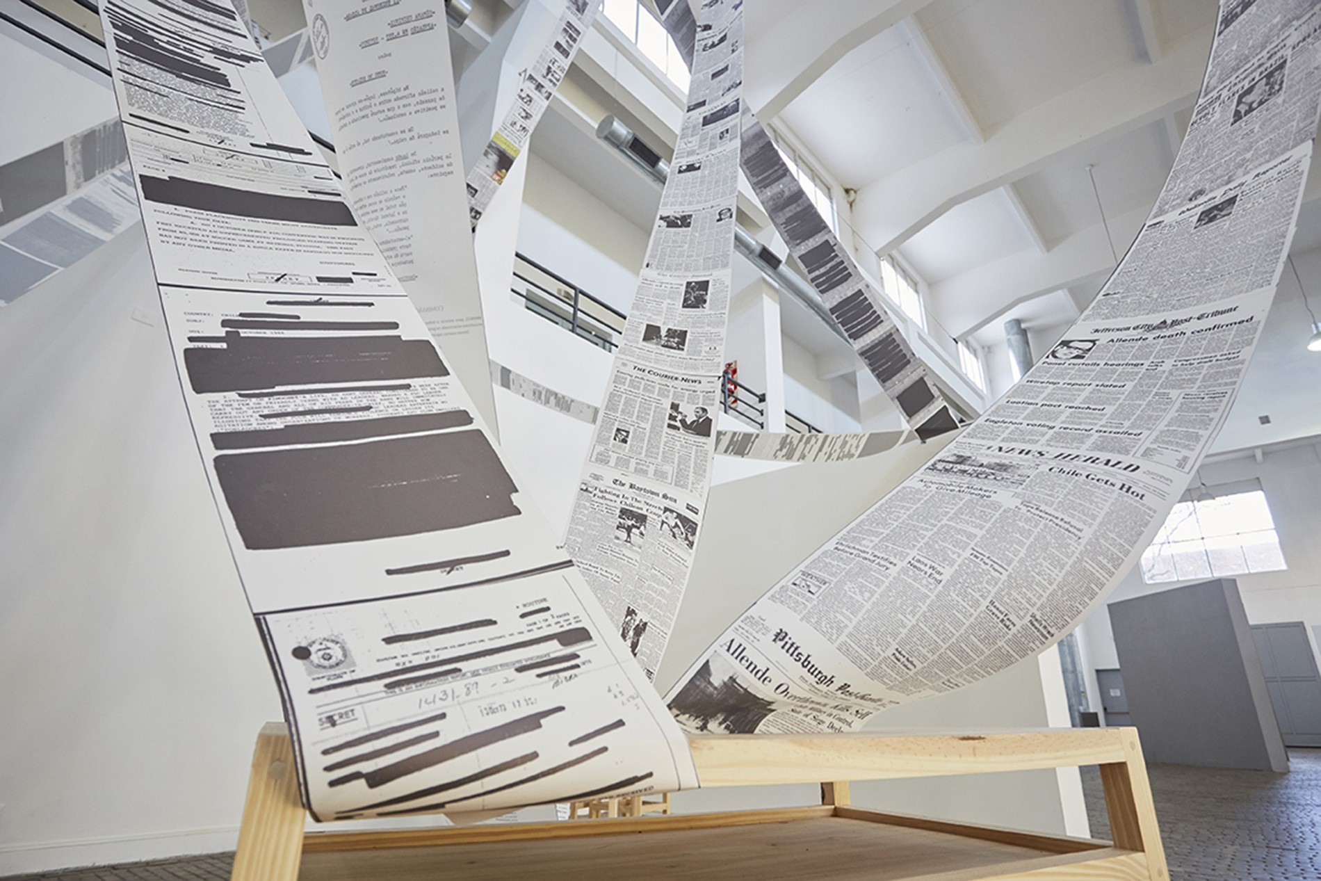 Así, la muestra se configura en torno a las nociones de archivo, exilio, identidades y territorio, enhebrando cruces y contactos cuya sinergia activa la potencia crítica de cada uno de sus enunciados.