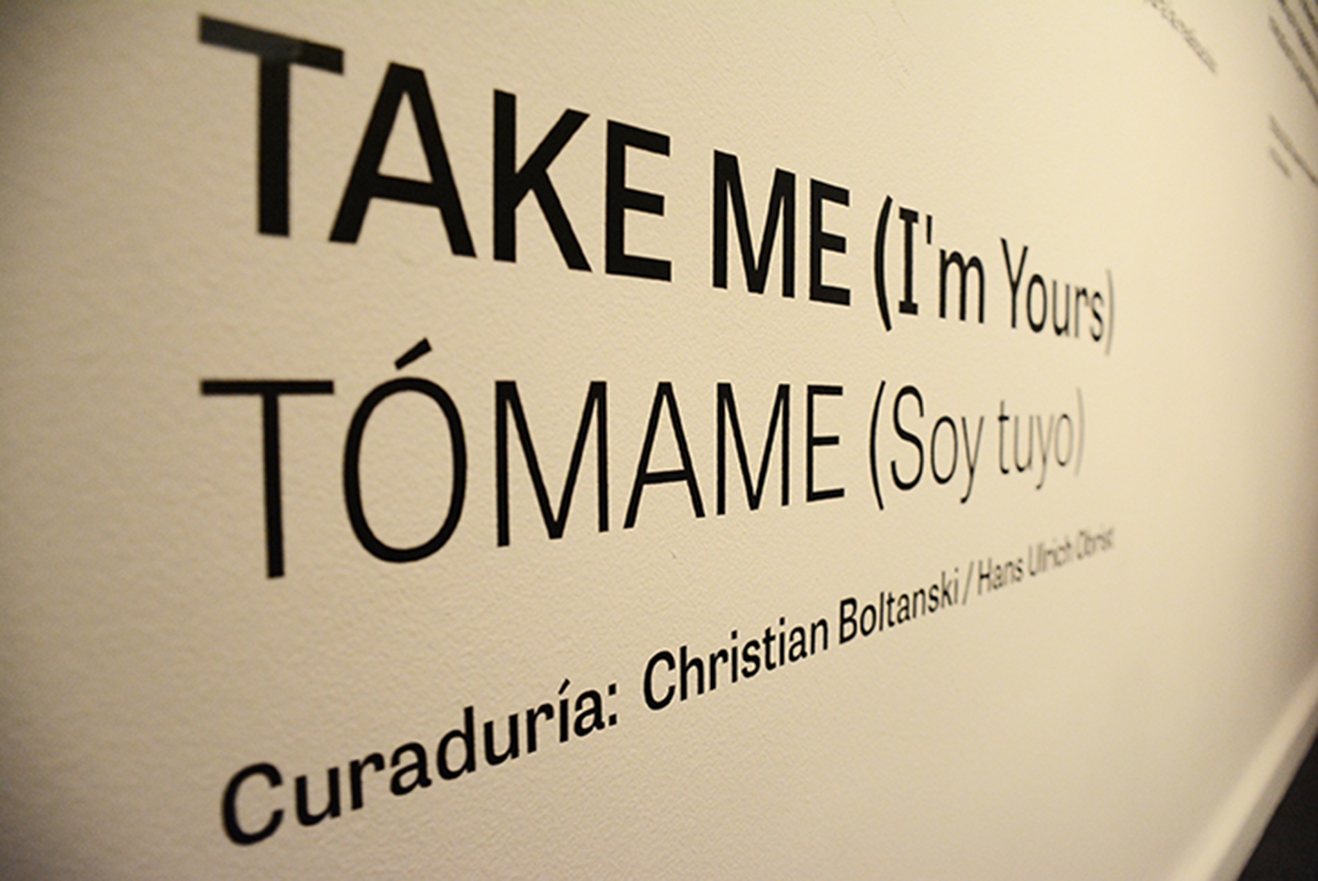 los invitamos a llevar adelante una nueva edición de este proyecto que ellos fundamentan en estos párrafos, extraídos de una extensa entrevista. Christian Boltanski: “Hace unos veinte años atrás solíamos encontrarnos con Hans Ulrich en bares […] lo que buscábamos era reinventar los métodos de las exposiciones, no solo de la obra de arte, sino también de la manera en que se exhibe […] el tema es precisamente hablar del gesto, de las reglas y del acto de exponer, pero no necesariamente de las obras […] no deberíamos hablar de las exposiciones en términos de la presentación de artistas, sino de la posibilidad de crear nuevas reglas del juego respecto de la tendencia dominante en el arte en la actualidad. […] Take me (I’m yours) fue un intento de cambiar el modo en que se muestra el arte. Creo que el vínculo entre estos proyectos yace en cierta medida en el cuestionamiento de la idea de Reliquia Sagrada […]. Take me (I’m yours) propone vencer el tabú de que nada se puede tocar en los museos porque la obra es sagrada […]. En ese momento de la historia a todos nos interesaba reflexionar sobre las reglas o más precisamente, sobre lo que era o no era sagrado”.Hans Ulrich Obrist: “Me acuerdo […]. Lo primero que me do Christian […] que me impactó profundamente era que la gente solo recuerda las exposiciones que inventan las reglas del juego. Estas reglas pueden ser disparadores, o reglas espaciales o temporales. […] La idea era que el arte pudiera viajar no como un objeto, sino como una suerte de partitura musical que se pudiera ejecutar hasta cincuenta o cien años después. […] Take me comenzó con una obra de Christian, Quai de la Gare. Nos preguntábamos cómo pasar de la divulgación inmaterial a la material, donde la obra se fragmentara y pudiera llevarse y donde la gente pudiera hacer todo lo que normalmente no se puede hacer en una exposición. […] Take me también se presenta en el contexto de la globalización. Estas exposiciones eran diseñadas para ser globales. […] Édouard Glissant nos alertó de los peligros de la homogenización que van de la mano de la globalización. Por lo tanto, es necesario inventar reglas del juego que hagan que esta homogenización sea más complicada. […] Take me (I’m yours) no es un supermercado. No se trata de volver a la histeria del consumo, hay algo más solemne”.
