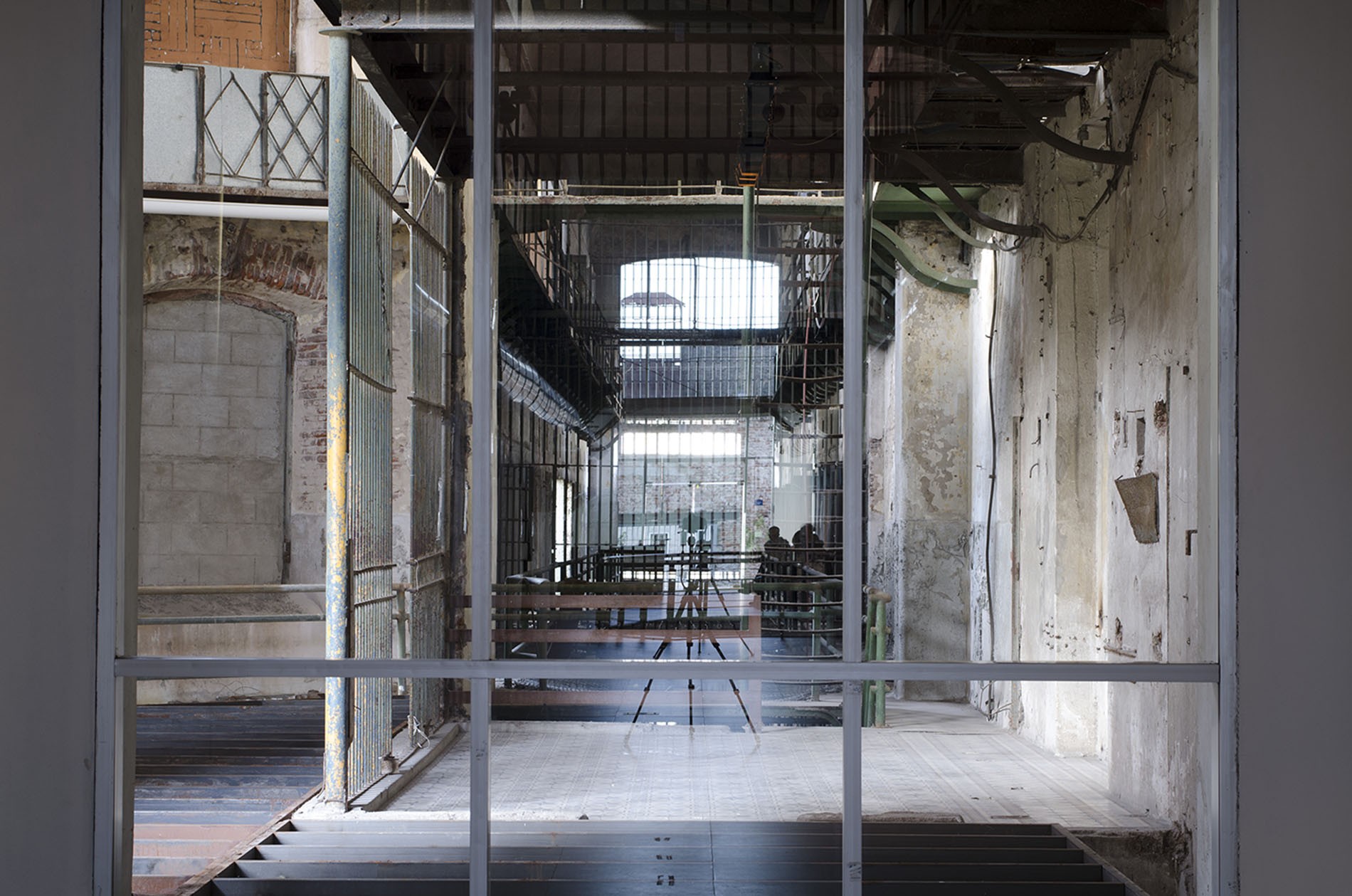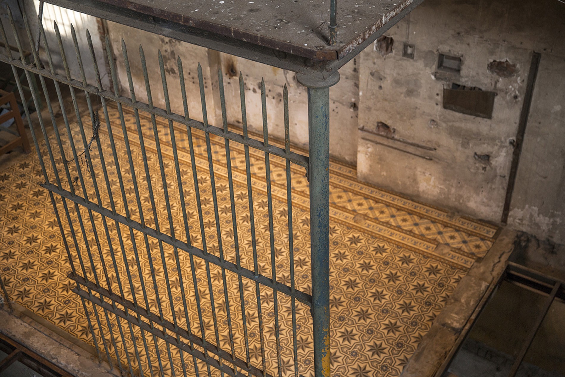 La acción –mínima- devuelve al lugar la historia de la cárcel y las diferentes vicisitudes que vivió ese edificio. Una construcción que después de reciclada se convirtió en espacio de arte. El lugar intervenido, por la acción de quitar, presenta una vibrante superficie de detalles de diseños calcáreos, provisto de un brillo que dan ganas de mirar, y por la acción de Calvo es simbólicamente reanimado. Se trata del piso de la torre de control del EAC, que aparece con la potencia de un animal dormido y que sólo puede ser visto a través de un vidrio y está separado por el vacío de una fosa.