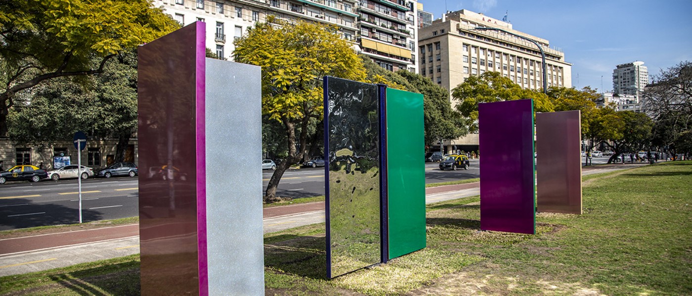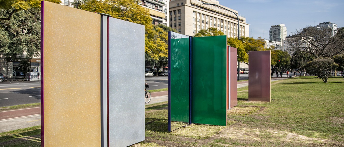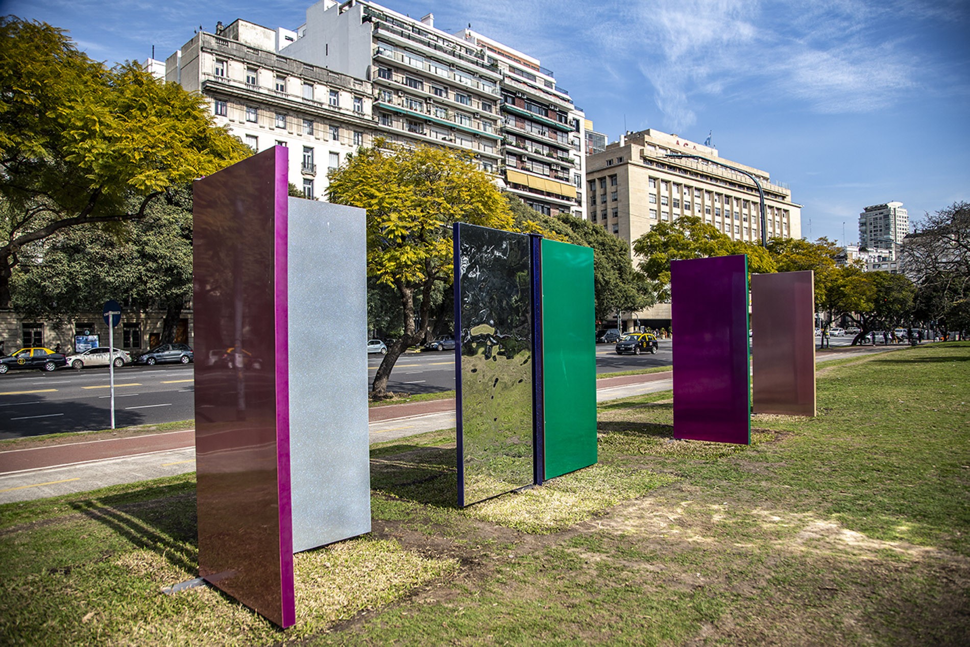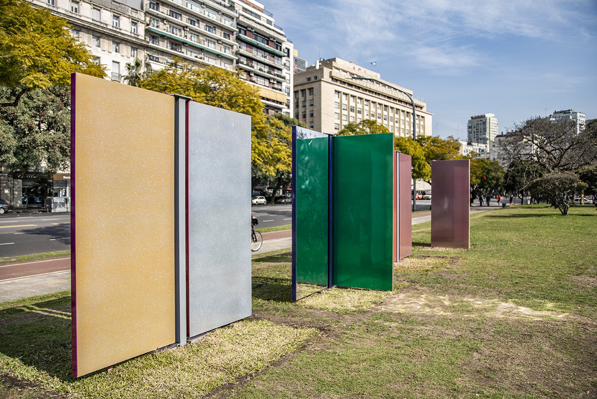 En construcción es una instalación en el espacio público que focaliza en los problemas relativos al espacio, tanto en cuestiones constitutivas como en sus vínculos con el contexto donde está ubicada y con las personas que se acerquen para activarla con su acción.