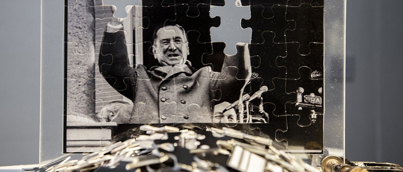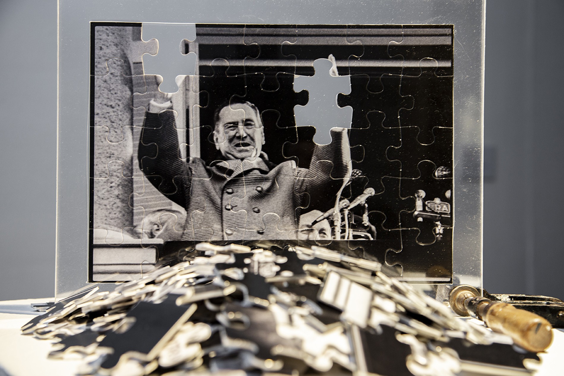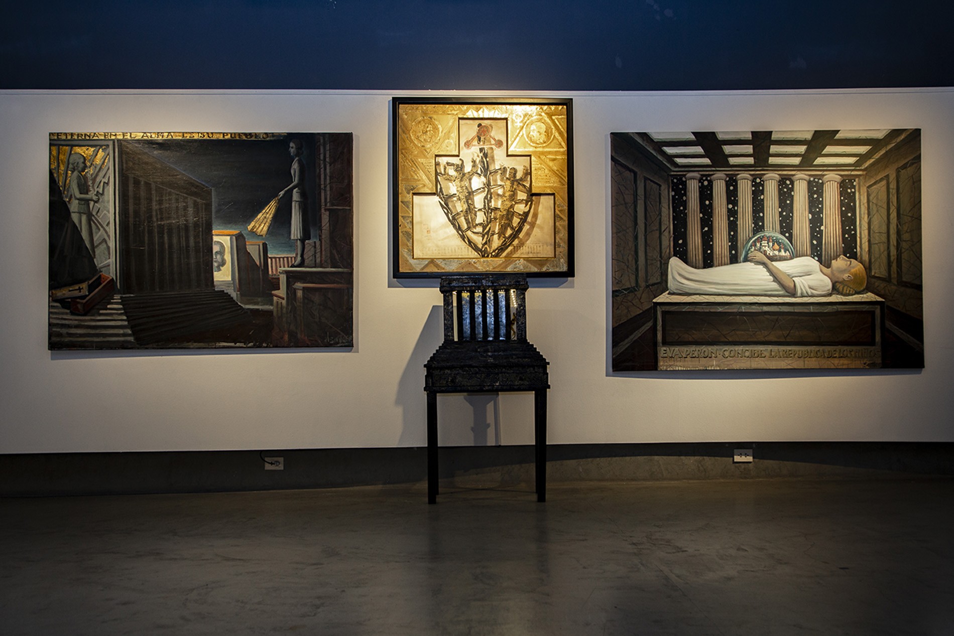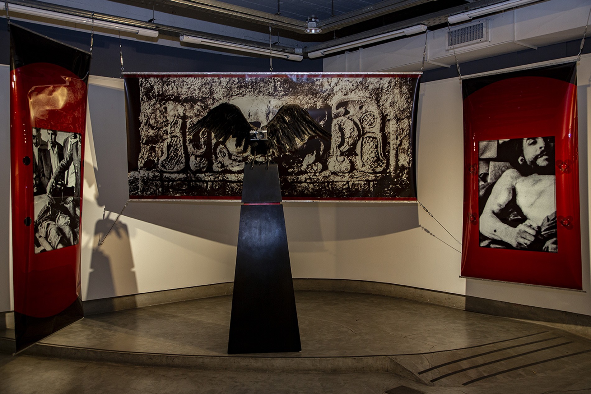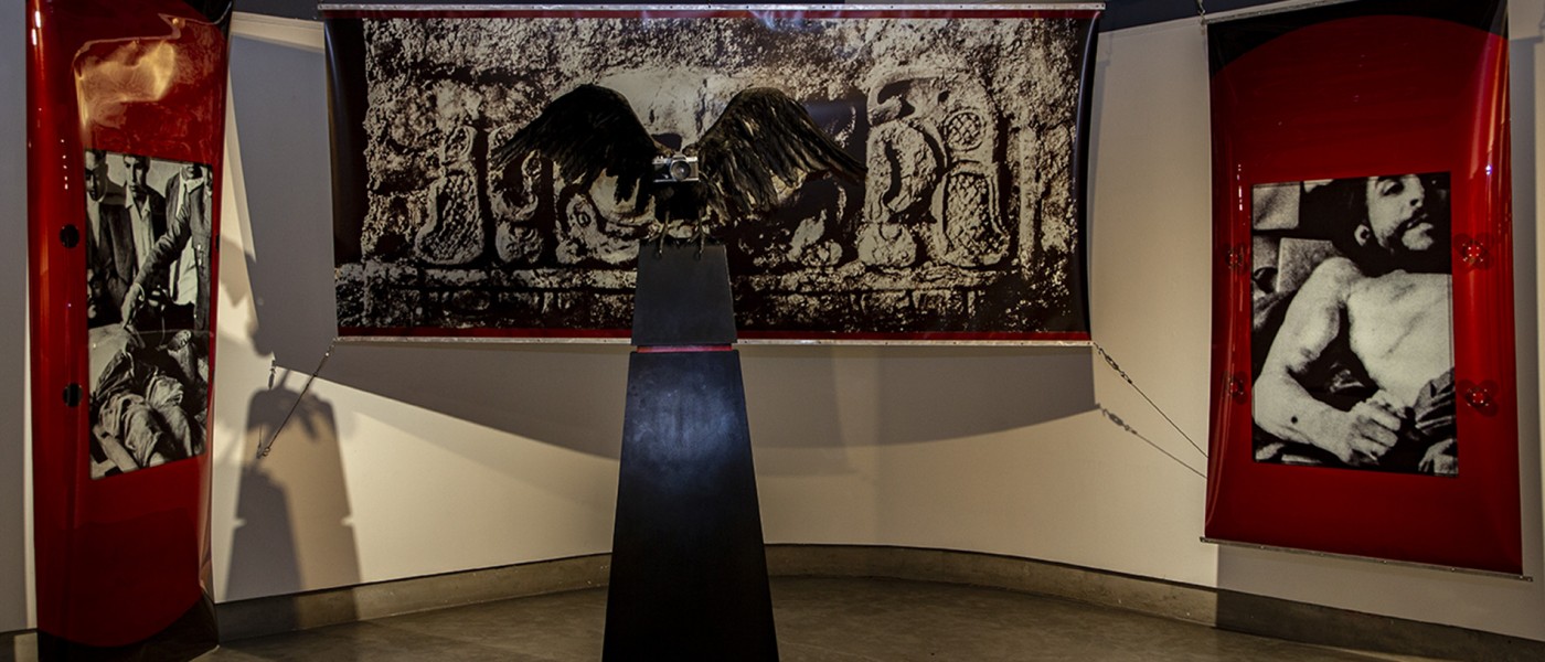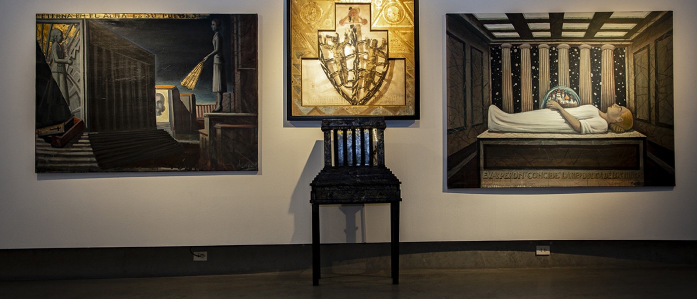 Centrada en tres “cuerpos políticos”, los de Perón, Evita y el Che, la exposición plantea la necesidad de no limitarse a esos casos tan propios, tan argentinos. Los correlatos en todo el mundo invitan a una reflexión que resuena en las obras y en los textos, ya que el libro que acompaña la muestra se propone como una pieza más, fundamental, como cada una de las otras que se exhiben.