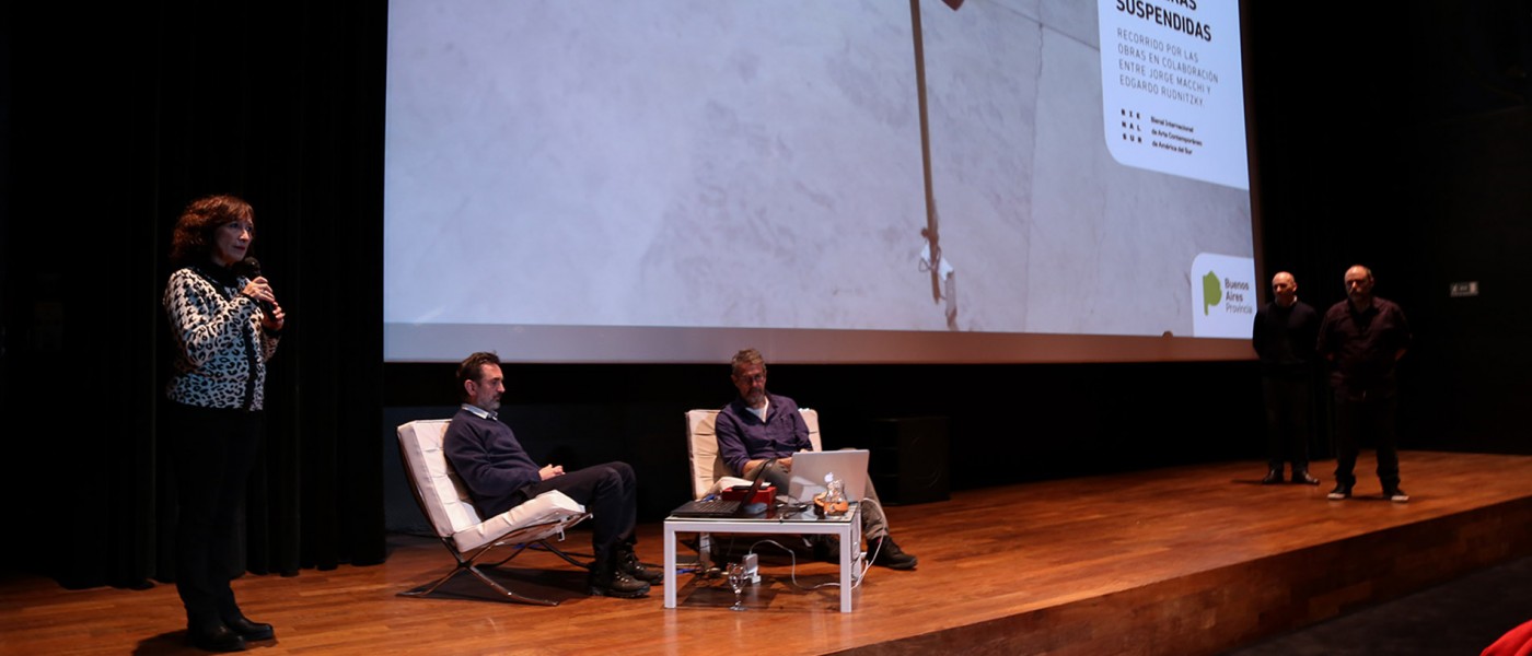 La tarea que une a Macchi y Rudnitzky se presenta como una clara referencia del abordaje transdisciplinario y el diálogo creativo. La dilución de la idea del artista como autor individual; los límites y la integración entre el arte visual y el sonoro; el trabajo a distancia, los viajes y los artistas argentinos en la escena global, son algunos de los temas que aparecerán en este recorrido exhaustivo por la obra que ambos hicieron en conjunto.