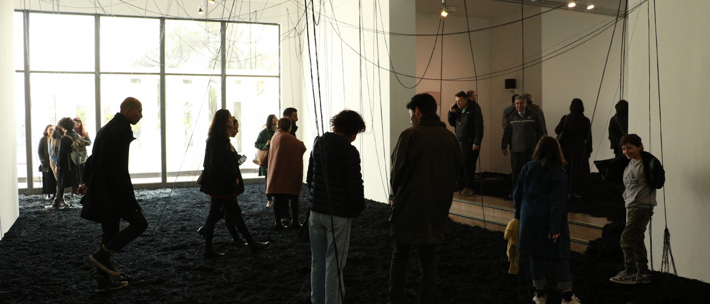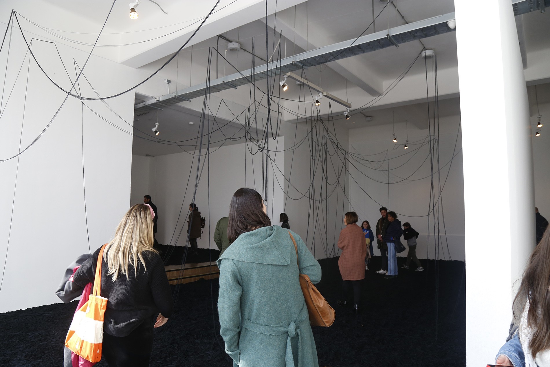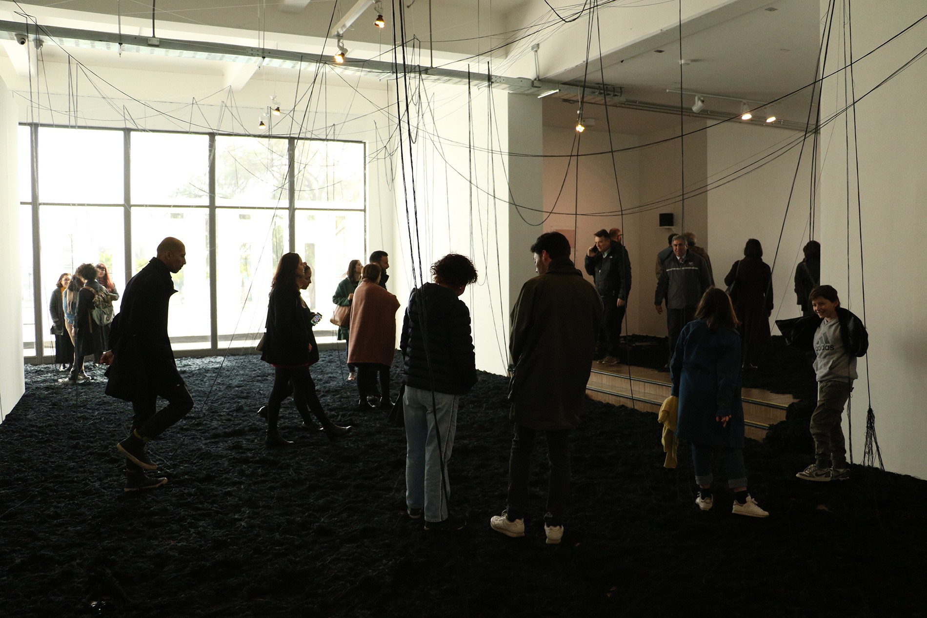 En el Centro Nacional de Arte Contemporáneo Cerrillos, La Bruja gana plena potencia. Sus 7.000 kilómetros de material textil toman control de la arquitectura moderna de este antiguo aeropuerto y se derraman por las escaleras, salen al exterior y visitan, incluso, otras obras del artista.