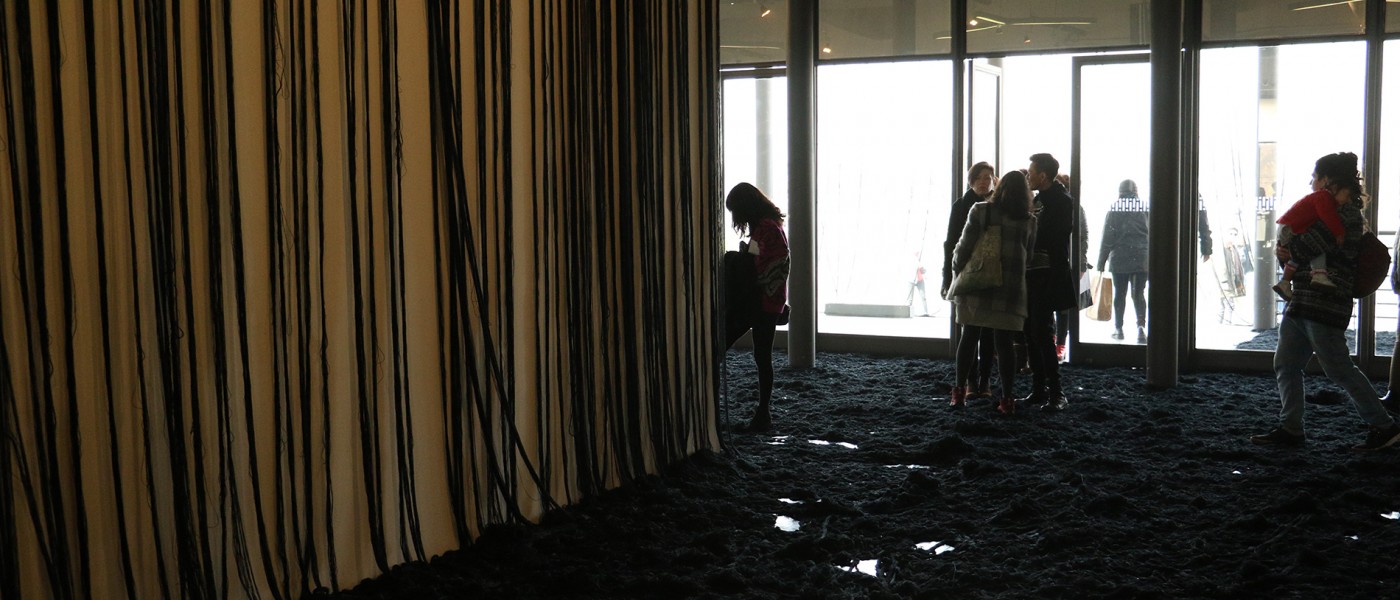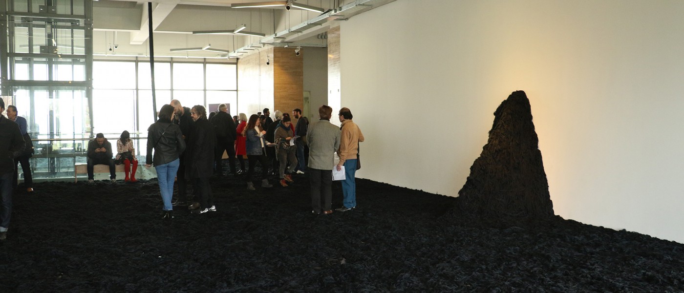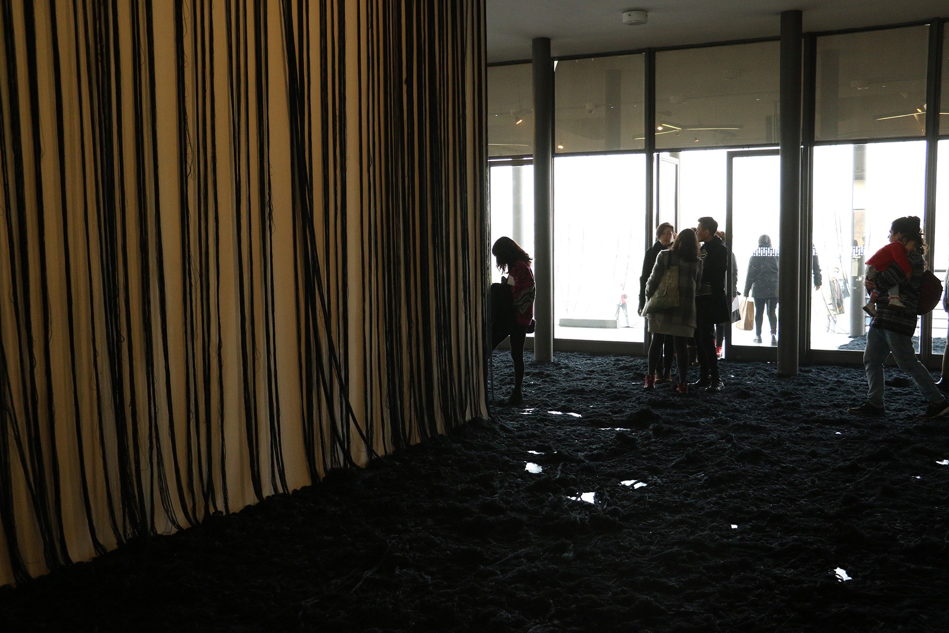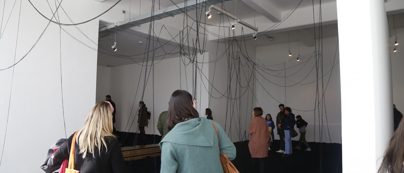 En el Centro Nacional de Arte Contemporáneo Cerrillos, La Bruja gana plena potencia. Sus 7.000 kilómetros de material textil toman control de la arquitectura moderna de este antiguo aeropuerto y se derraman por las escaleras, salen al exterior y visitan, incluso, otras obras del artista.