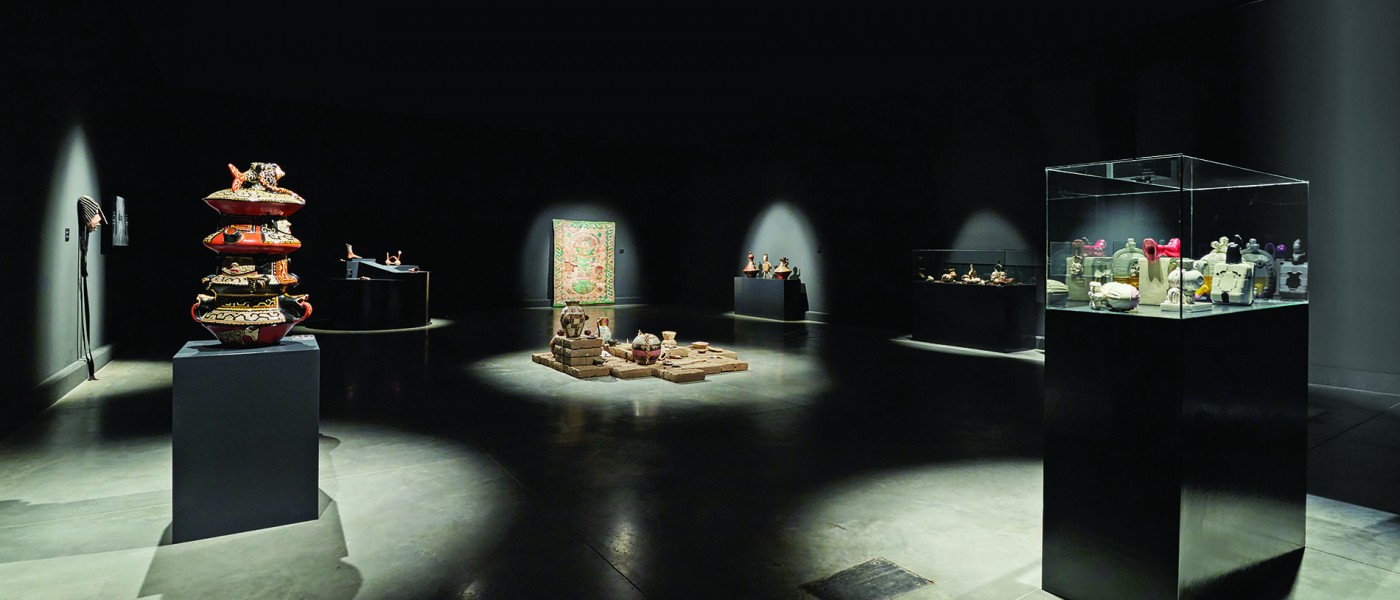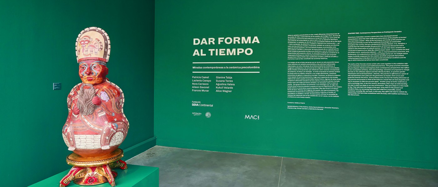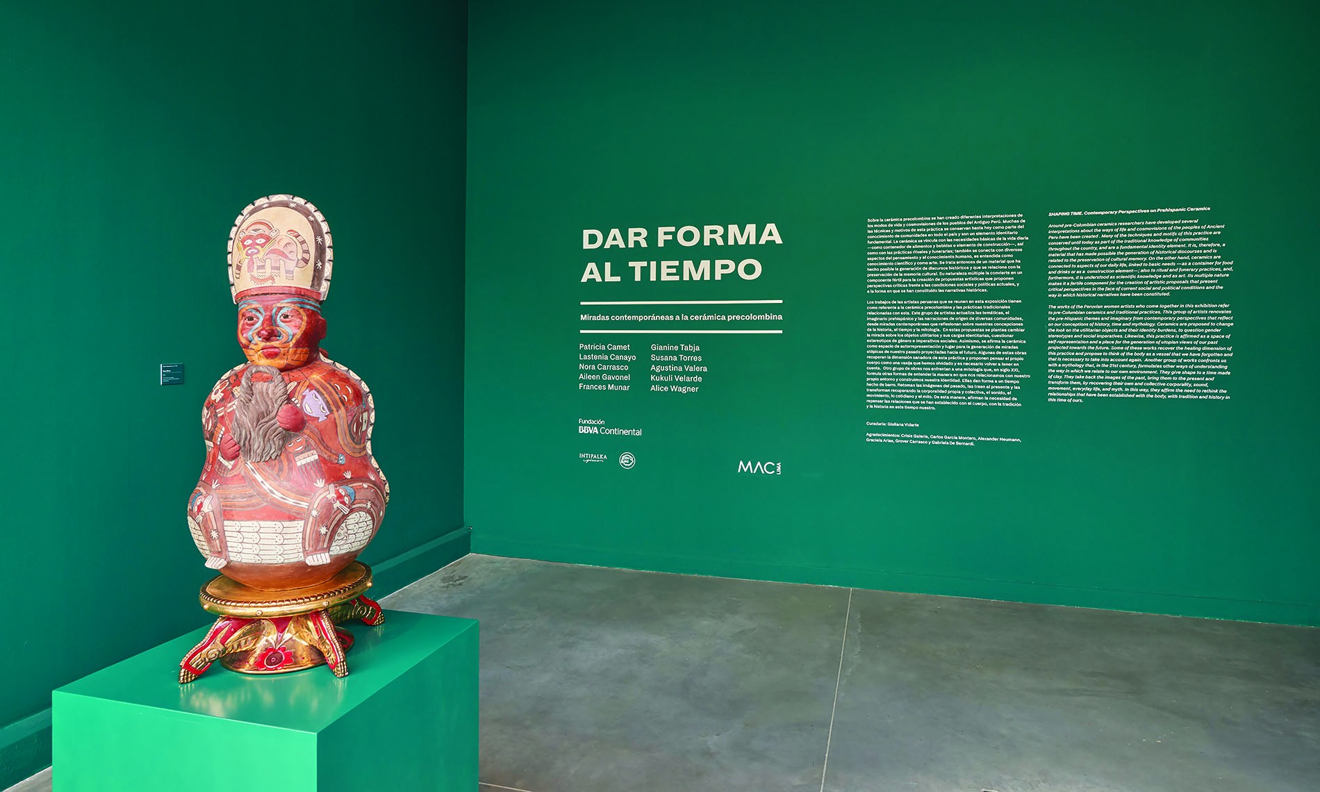 Los trabajos de las artistas peruanas que se reúnen en esta exposición tienen como referente a la cerámica precolombina y las prácticas tradicionales relacionadas con esta. Este grupo de artistas, por ejemplo, actualiza las temáticas y el imaginario precolombino y las narraciones de origen de diversas comunidades, desde miradas contemporáneas que reflexionan sobre nuestras concepciones de la historia, el tiempo y la mitología. La cerámica no solo se incluye para pensar a través de ella en cómo fue hecha, cuál fue su utilidad y la función que cumplió sino, a su vez, para comprender a esta materia como medio para afirmar ideas y generar cuestionamientos. En estas propuestas se plantea cambiar la mirada sobre los objetos utilitarios y sus cargas identitarias, cuestionar estereotipos de género e imperativos sociales, asimismo, se afirma la cerámica como espacio de autorrepresentación y lugar para la generación de miradas utópicas de nuestro pasado proyectadas hacia el futuro. Algunas de estas obras recuperan la dimensión sanadora de esta práctica y proponen pensar el propio cuerpo como una vasija que hemos olvidado y es necesario volver a tener en cuenta. Otro grupo de obras nos enfrentan a una mitología que, en siglo XXI, formula otras formas de entender la manera en que nos relacionamos con nuestro propio entorno. Ellas dan forma a un tiempo hecho de barro. Retoman las imágenes del pasado, las traen al presente y las transforman recuperando la corporalidad propia y colectiva, el sonido, el movimiento, lo cotidiano y el mito. De esta manera, afirman la necesidad de repensar las relaciones que se han establecido con el cuerpo, con la tradición y la historia en este tiempo nuestro.