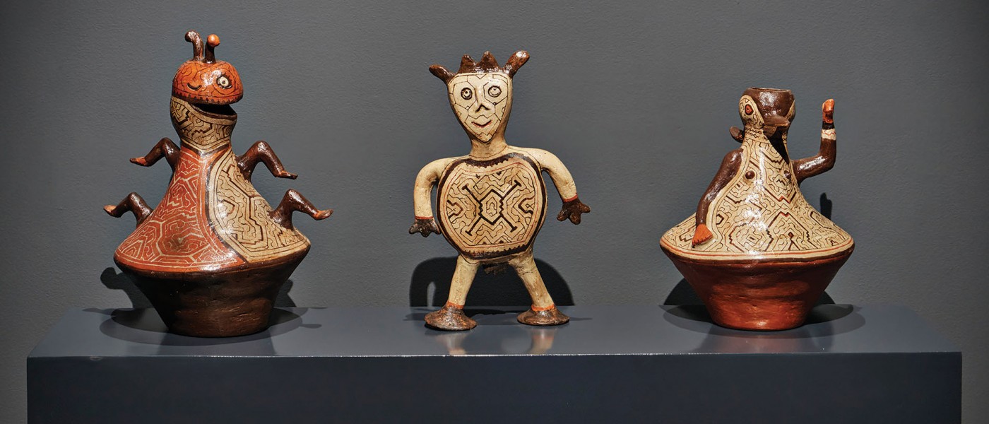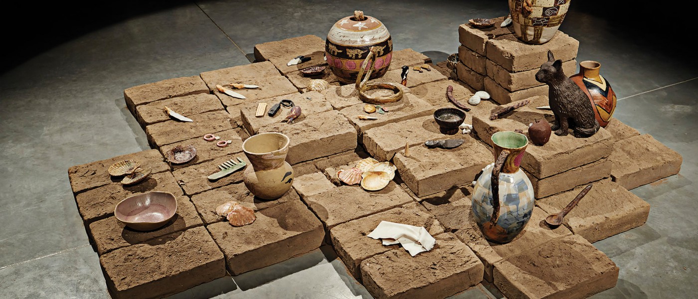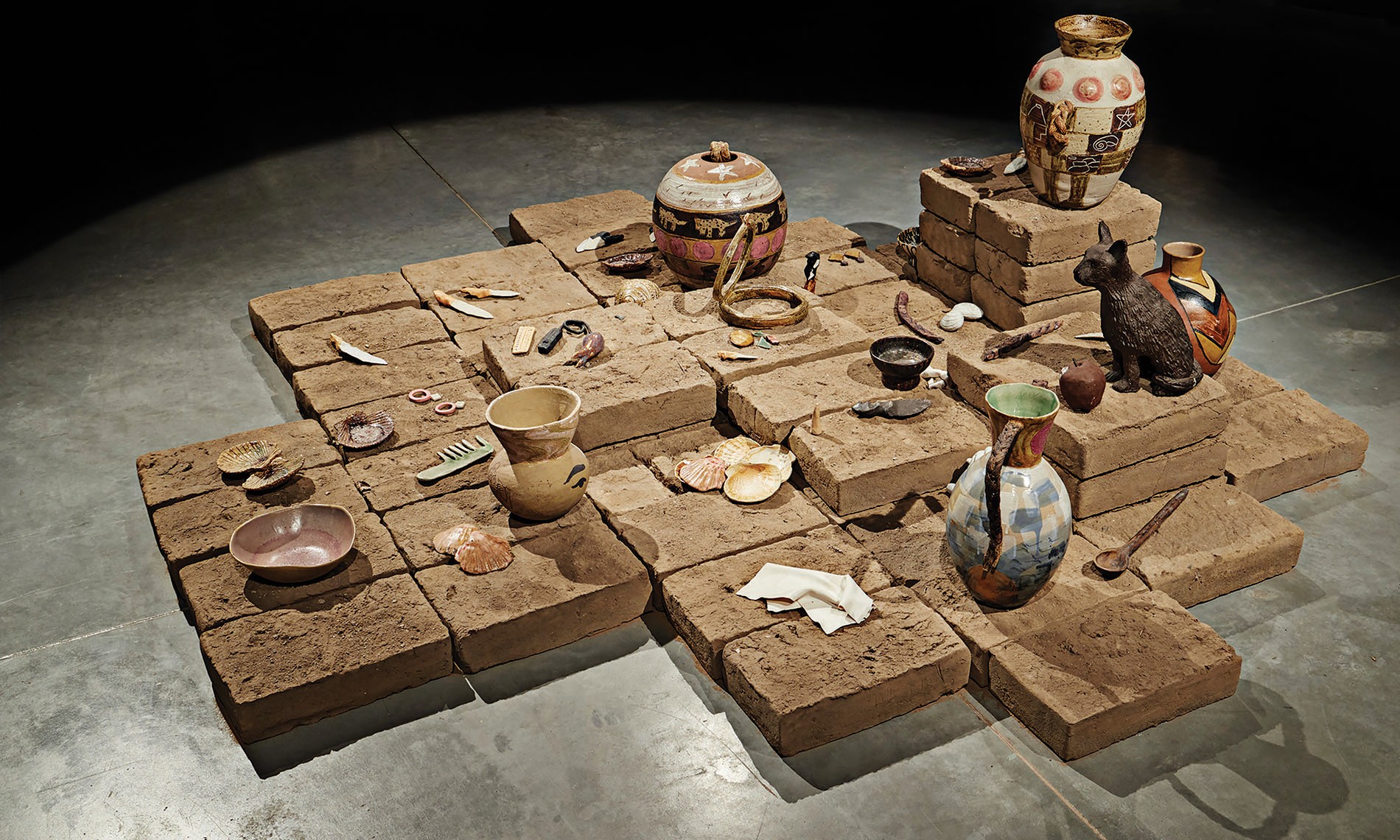 Sobre la cerámica precolombina se han creado diferentes interpretaciones de los modos de vida y cosmovisiones de los pueblos del Antiguo Perú. Muchas de las técnicas y motivos de esta práctica se conservan hasta hoy como parte del conocimiento de comunidades en todo el país y son un elemento identitario fundamental. De otro lado, la cerámica, en general, permite establecer conexiones con aspectos diversos de nuestra vida diaria y múltiples áreas del conocimiento humano. Así, se vincula con las necesidades básicas ―como contenedor de alimentos y bebidas o elemento de construcción— así como con las prácticas rituales y funerarias, y, además, es entendida como conocimiento científico y como arte. Se trata entonces de un material que ha hecho posible la generación de discursos históricos y que se relaciona con la preservación de la memoria cultural. Su naturaleza múltiple la convierte en un componente fértil para la creación de propuestas artísticas que proponen perspectivas críticas frente a las condiciones sociales y políticas actuales, y a la forma en que se han constituido las narrativas históricas.