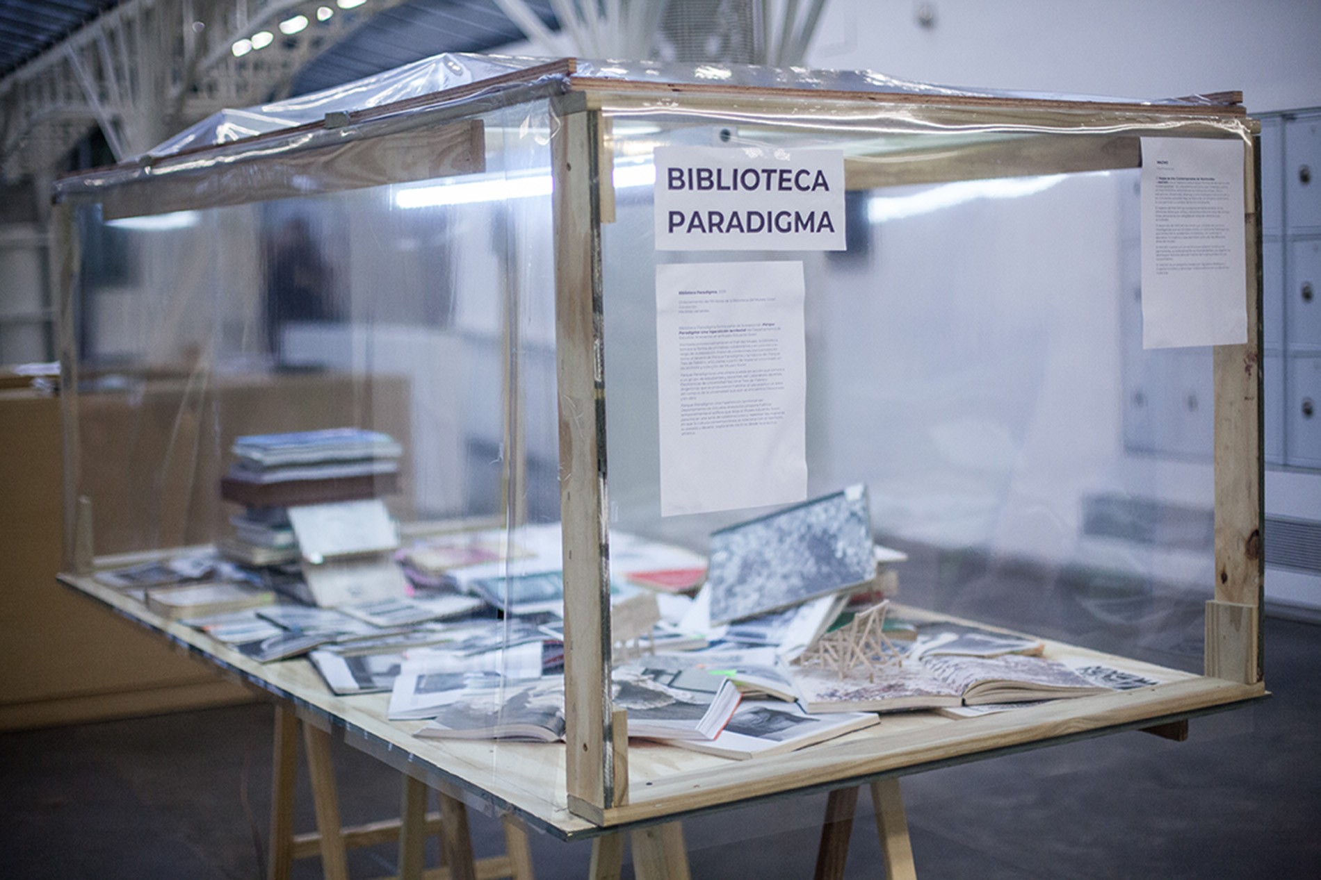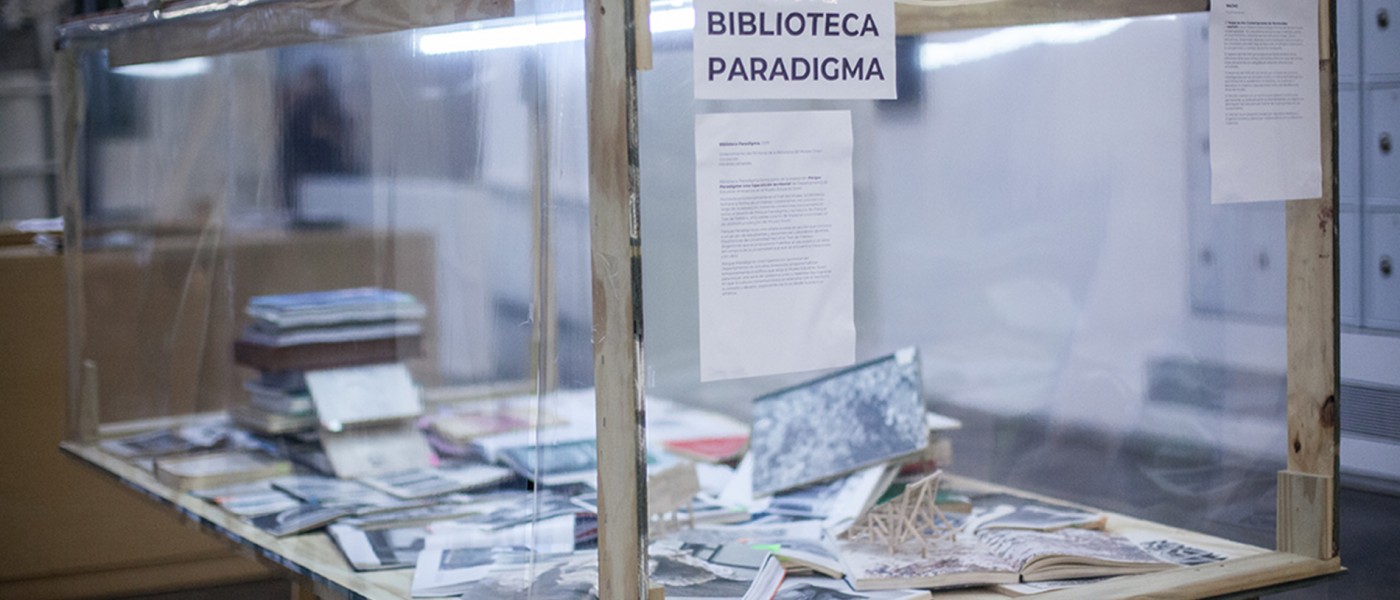 Montada provisionalmente en el hall del Museo, Biblioteca Paradigma tomará la forma de un trabajo colaborativo y en proceso a lo largo de la estadía del Departamento de Estudios Anexactos en el Museo Sívori, trazando conexiones transversales en torno al devenir de Parque Paradigma y la historia del Parque Tres de Febrero, articuladas a partir de material encontrado en sus archivos y colección.