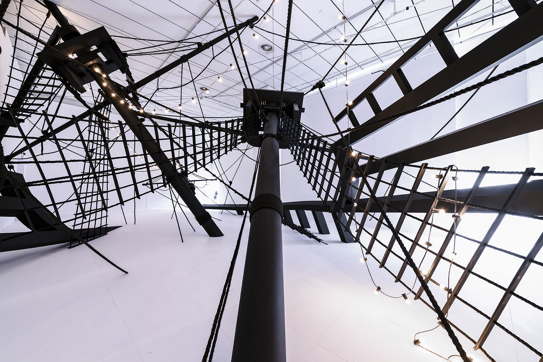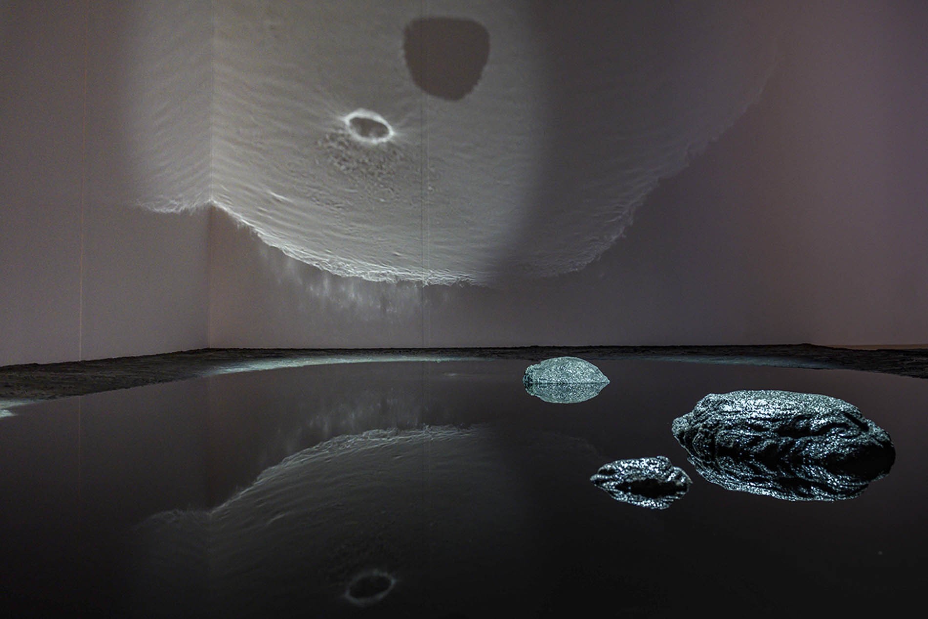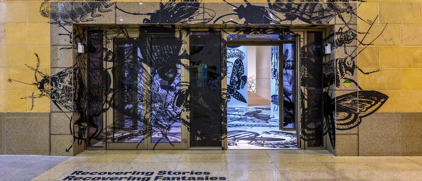 El público entra en la sala a través de la obra de Regina Silveira y se sumerge en un espacio lleno de imágenes de insectos gigantescos impresas en las puertas, las paredes y el techo. Más allá de esta inesperada entrada, es posible acceder a otro microespacio y encontrar en la pieza de Eduardo Basualdo el universo acuoso de las sirenas, o en otra habitación contemplar la mágica instalación floral del artista japonés Makoto Azuma y la peculiar historia contada por Laurent Grasso. Además, los espectadores pueden sorprenderse con algunos dibujos espaciales y una instalación de José Bechara y Marco Maggi, o sentirse perdidos en el espacio con la videoinstalación de Graciela Sacco o la pieza textil de Paola Monzillo realizada con mapas. A continuación, los espectadores podrán conocer la experiencia del tiempo de Ayman Zedani, la identificación de las esperanzas de Faisal Samra, y asistir a las singulares narraciones de Sarah Abu Abdallah. Finalmente, llegan a la última sección del espacio para encontrar el mundo íntimo de Fátima Al-Banawi y el imaginativo trabajo de Mariana Telleria, una embarcación gigante que parece haber quedado atrapada allí.