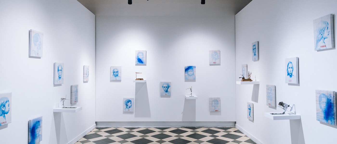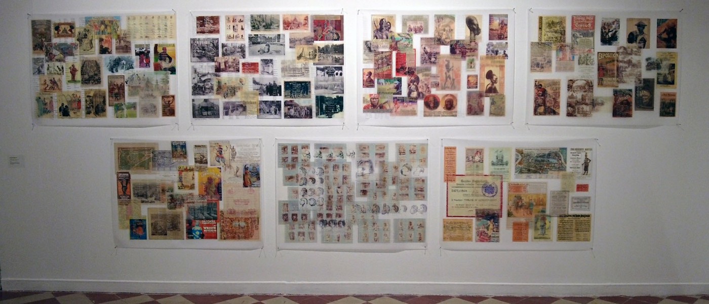 Fotografía: Voluspa Jarpa (CHL). Políptico atlas zoos humanos (detalle), 2013. Lápiz, tinta y acuarela sobre papel. Tinta e impresión sobre papel poliéster 400 x 210 cm