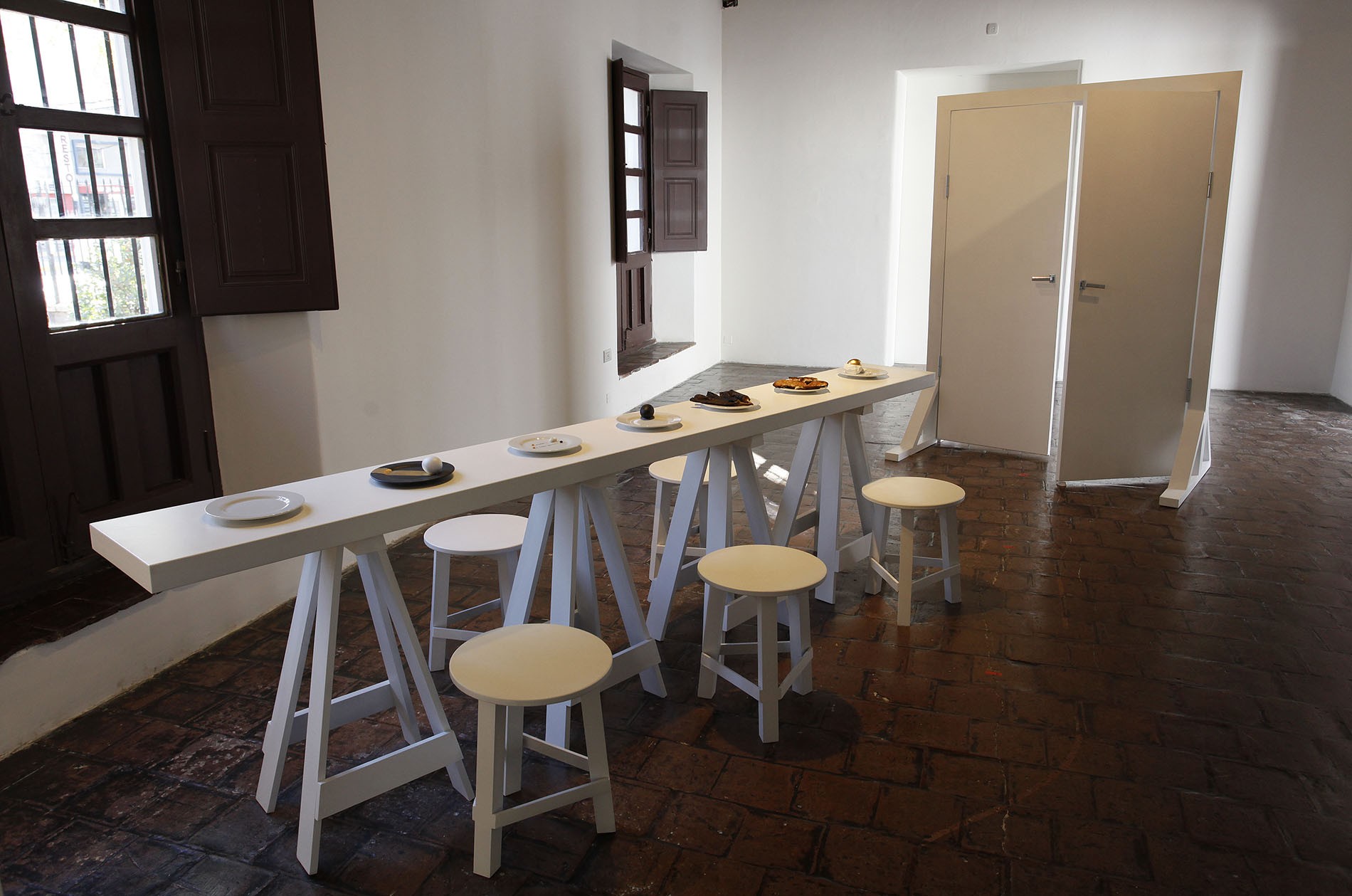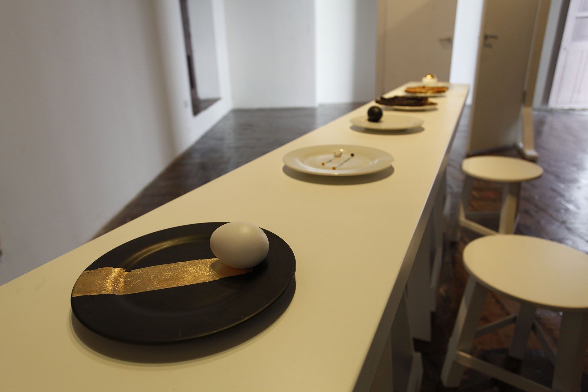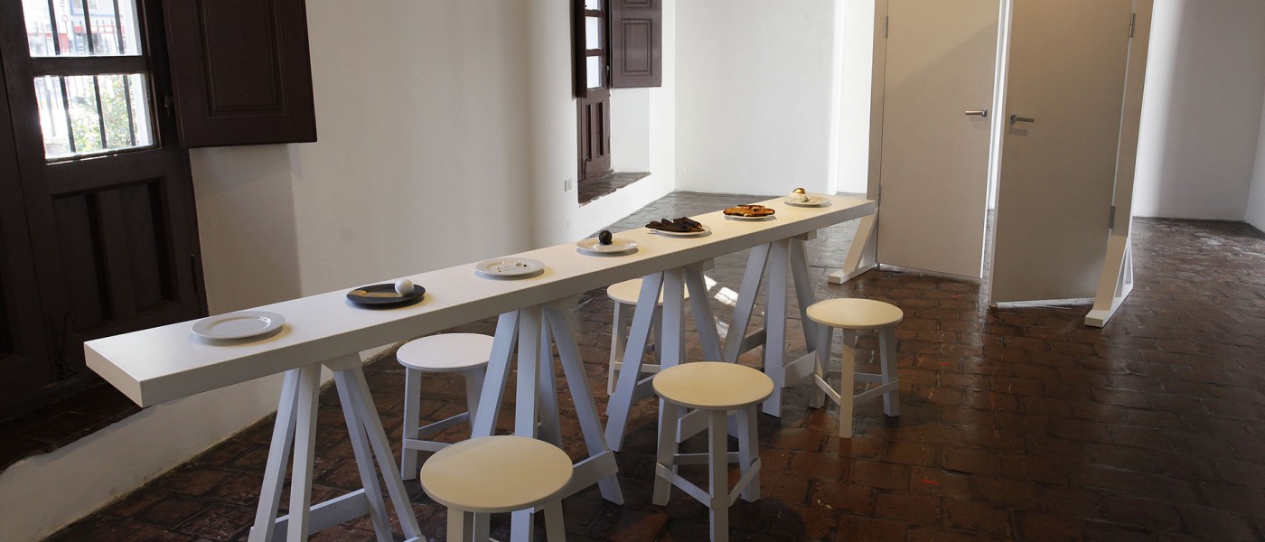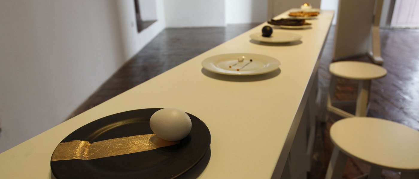 La actual crisis económica y ambiental nos obliga a repensar nuestras prácticas como sujetos sociales y ciudadanos comunitarios. La exposición presenta tres obras del artista conceptual argentino Víctor Grippo (1936-2002) que proponen reflexionar sobre la alimentación en época de crisis, el rol de la humanidad frente a la naturaleza, el de los ciudadanos frente a la comunidad y el de los productores de sentido frente a un público abrumado por la urgencia. Así, Naturalizar el hombre, humanizar la naturaleza (1977) presenta el alimento como materia en transformación, la ciencia como mediadora de prácticas nocivas para el ecosistema y el alimento y el trabajo como gestos reivindicadores en el caos. La comida del artista (1991) remite a la compleja relación entre el arte y el dinero, el arte y la productividad, el arte y el tiempo. ¿Qué es lo que puede aportar el arte en este contexto de deterioro civilizatorio? ¿Puede el arte generar alimento? Por último, el homenaje de la performance Construcción de un horno popular para hacer pan (1972) -realizada en conjunto con el escultor Jorge Gamarra- evoca el ritual comunitario de la alimentación. De esta manera, Un horno para dos mesas intenta reflexionar sobre la alimentación en épocas de crisis y las múltiples aristas que se desprenden de esta reflexión en torno a nuestro rol como seres humanos frente a la naturaleza.