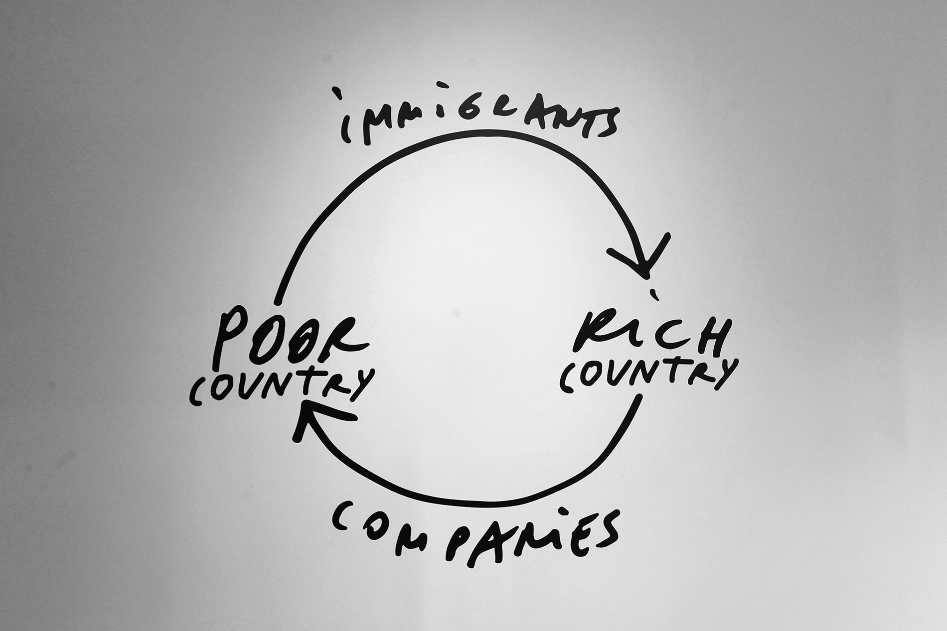 En un escenario tan complejo como el actual, observamos que, lejos de emerger un diálogo global para coordinar las acciones frente a la pandemia, de despejar –al menos por un rato– las mezquinas distinciones entre centros y periferias, nortes y sures, ricos y pobres, día a día el mundo se ha ido encerrando cada vez más. Los periódicos solo informan cuestiones de cercanía, de urgencia, y las noticias del vecino aparecen la mayor parte de las veces como una (¿tácita?) amenaza. Pero la otra realidad, la preexistente de gente sin lugar, de un capitalismo que agudiza las diferencias y hace que la pobreza asuma formas que remiten a tiempos que creíamos haber superado, no solo persiste, sino que sin dudas se profundizará en las condiciones actuales. En este marco, en el que las condiciones de lo vital están siendo vividas de manera tan extrema, nos preguntamos en qué sitio queda la problemática de fronteras, tránsitos, migraciones, identidades y cómo se reconfiguran estos términos en las actuales coyunturas. En la búsqueda de dar una respuesta, desde la producción simbólica, a una coyuntura específica como la de las problemáticas migratorias contemporáneas, BIENALSUR se encuentra con Juntos Aparte y desde 2017 convergen en el interés por ensayar respuestas que superen los límites del pensamiento único. Juntos Aparte un proyecto que, centrado en un sitio específico, Cúcuta –en la frontera entre Colombia y Venezuela–, apuesta por situarlo, en palabras de Alex Brahim: “como epicentro y abanderado de un proceso de diálogo y observatorio permanente sobre los fenómenos fronterizos, concediendo valor a la naturaleza e identidad de la ciudad y la región, situándolas de manera proactiva en la cartografía global de transacciones culturales y de saberes”. La convergencia de ideas y la experiencia compartida nos llevan a atravesar las fronteras y a desplegar muestras con el propósito de poner en común las condiciones del migrar, el encuentro de identidades y la configuración de un “nosotros” entre los “otros”. A modo de introducción, un repertorio de cartografías radicales revisa la lógica del mundo. Las fronteras “calientes” –Colombia-Venezuela, Israel-Palestina, México-Estados Unidos– están presentes en la sala a través de la perspectiva de los artistas seleccionados. Lecturas poéticas, miradas críticas, reconfiguraciones visuales se encuentran en este relato curatorial que tiene en el antiguo Hotel de Inmigrantes de Buenos Aires un sitio privilegiado para el encuentro con los públicos.