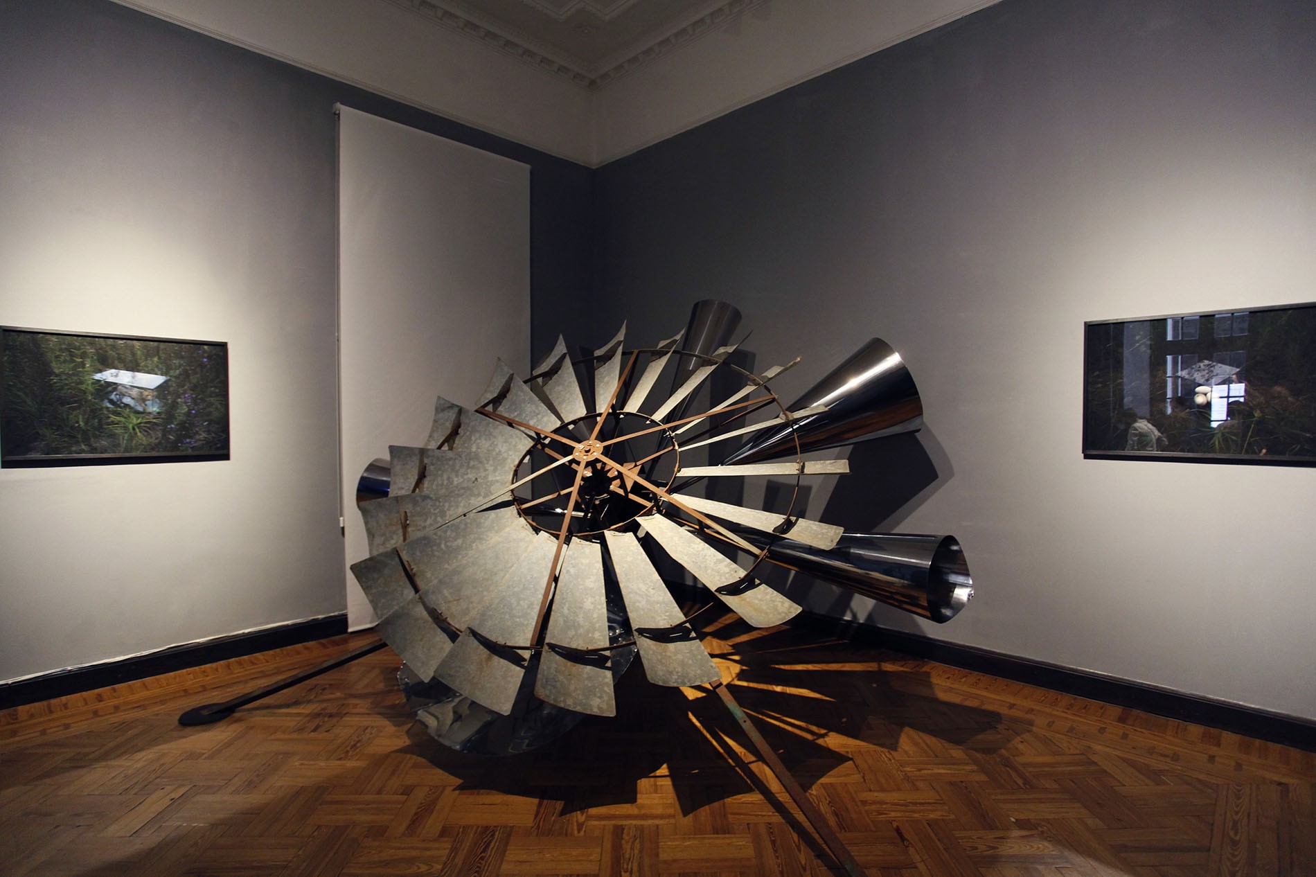 Visitas: De martes a domingos y días feriados de 10 a 20h, con reserva previa en autoentrada.com - Entrada: $250. Miércoles: gratis. La Sociedad de Amigos y Benefactores de las Artes de Cañada Rosquín presenta la primera muestra retrospectiva de C. Brambilla (1912-¿1983?), que reúne una serie de obras y proyectos inconclusos, a casi cincuenta años de su última presentación en Cañada Rosquín, Santa Fe. Resultado de una investigación exhaustiva, la exposición propone rescatar un conjunto heterogéneo pero altamente coherente de una producción pionera en el vínculo entre arte, ciencia y naturaleza. La recuperación de una figura de pueblo, cuyo legado es por completo desconocido para el itinerario del arte nacional e internacional, invita a revisar las nociones de centro y periferia, pero fundamentalmente a reformular el vínculo entre las artes y la naturaleza desde un contexto rural. Brambilla no participó del circuito artístico de su época y apenas conoció las discusiones y desarrollos conceptuales que se estaban llevando a cabo. Sin embargo, muchos de sus proyectos están en sintonía con la producción artística experimental del momento. Sus investigaciones eran propias del campo técnico, a partir del cual produjo una serie de dispositivos de intercambio y comunicación con los animales de la región. Formó parte de la Sociedad Argentina de Orquidófilos, de la Asociación Argentina Interplanetaria, y en la década del cincuenta fundó la Sociedad de Amigos y Benefactores de las Artes de Cañada Rosquín. Estas investigaciones llevaron a Brambilla a realizar cultivos hidropónicos, a practicar la radioafición, la taxidermia y la aviación. Su gran cometido, sin embargo, fue cultivar un diálogo interespecies con los animales de la región santafesina proyectando una gran reserva natural para preservar a pumas, aguará guazú, zorros y yararás. Podría decirse que amplió la comunidad más allá de lo humano, fomentando los vínculos interespecies con animales y con la flora nativa. En esta ocasión, presentamos una serie de pinturas y tres proyectos que Brambilla nunca llegó a realizar. Recuperados por los actuales integrantes de la Sociedad de Amigos y Benefactores de las Artes de Cañada Rosquín, estos proyectos fueron llevados a cabo recientemente en la reserva natural Fundación Federico Wildermuth y se presentan por primera vez junto al documental El fantasma errante del pueblo azul, sobre la vida y obra de Brambilla. Algunas de las pinturas son originales, otras debieron ser reconstruidas a partir de fotografías y el catálogo de la exposición. En cuanto a los proyectos, se presentan Diálogo con pumas y aguará guazú, Concierto para peces de Río y Conversación entre animales sobre la vida y la muerte. En Diálogo con pumas y aguará guazú buscó generar una serie de sonidos a partir de los molinos de viento para atraer a los grandes animales mamíferos de la región. Las grandes campanas sonoras, probablemente influenciadas por los hermanos Baschet, permiten amplificar los sonidos de una escultura sonora pensada para ser instalada en el campo. Conversación entre animales sobre la vida y la muerte se trata de una relocalización de los animales conservados en taxidermia que el mismo Brambilla había realizado entre las décadas de los 40 y los 60. En sus anotaciones proponía colocar los animales muertos en distintas locaciones del espacio rural, con el propósito de observar y estudiar las posibles interacciones con animales vivos. El último proyecto recuperado es Concierto para peces de río, en el que buscó conectarse y dialogar con la fauna acuática a partir de las frecuencias de escucha de los peces de la región. Del concierto existen algunas partituras, aunque se desconoce si Brambilla llegó efectivamente a realizarlo y de qué manera. Los integrantes del equipo lo han llevado a cabo respetando la estructura general, pero introduciendo tecnología desconocida en la época en que el concierto fue concebido. Por último, se presenta por primera vez el documental El fantasma errante del pueblo azul, sobre la vida y obra de Brambilla desde su nacimiento en una Cañada Rosquín azotada por la epidemia de peste bubónica, hasta su legado, influencias y el misterio de su desaparición. Colectivo Sociedad de Amigos y Benefactores de las Artes de Cañada Rosquín