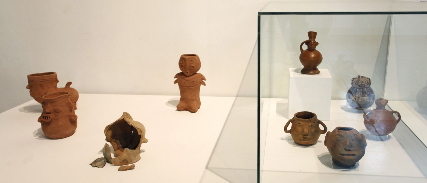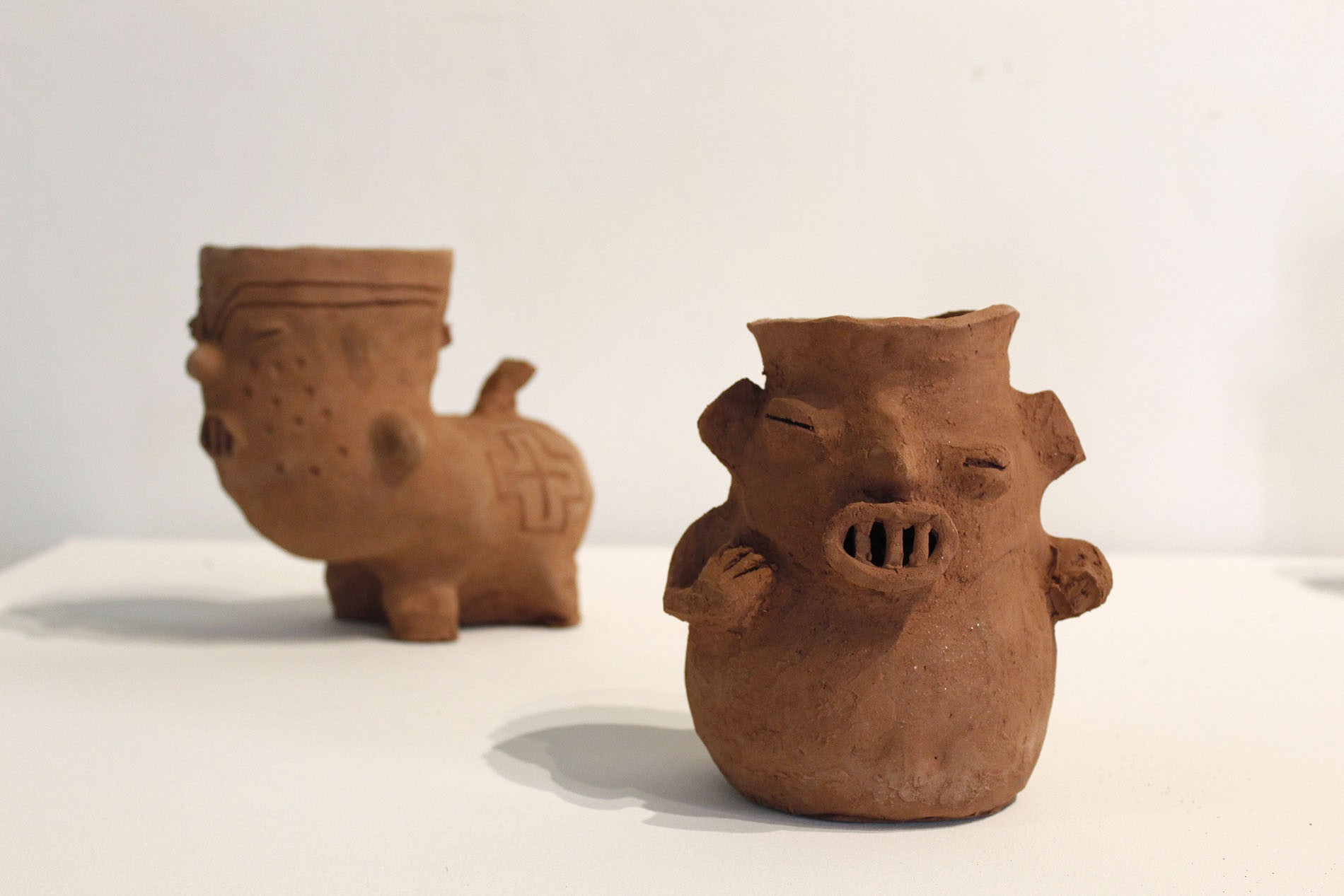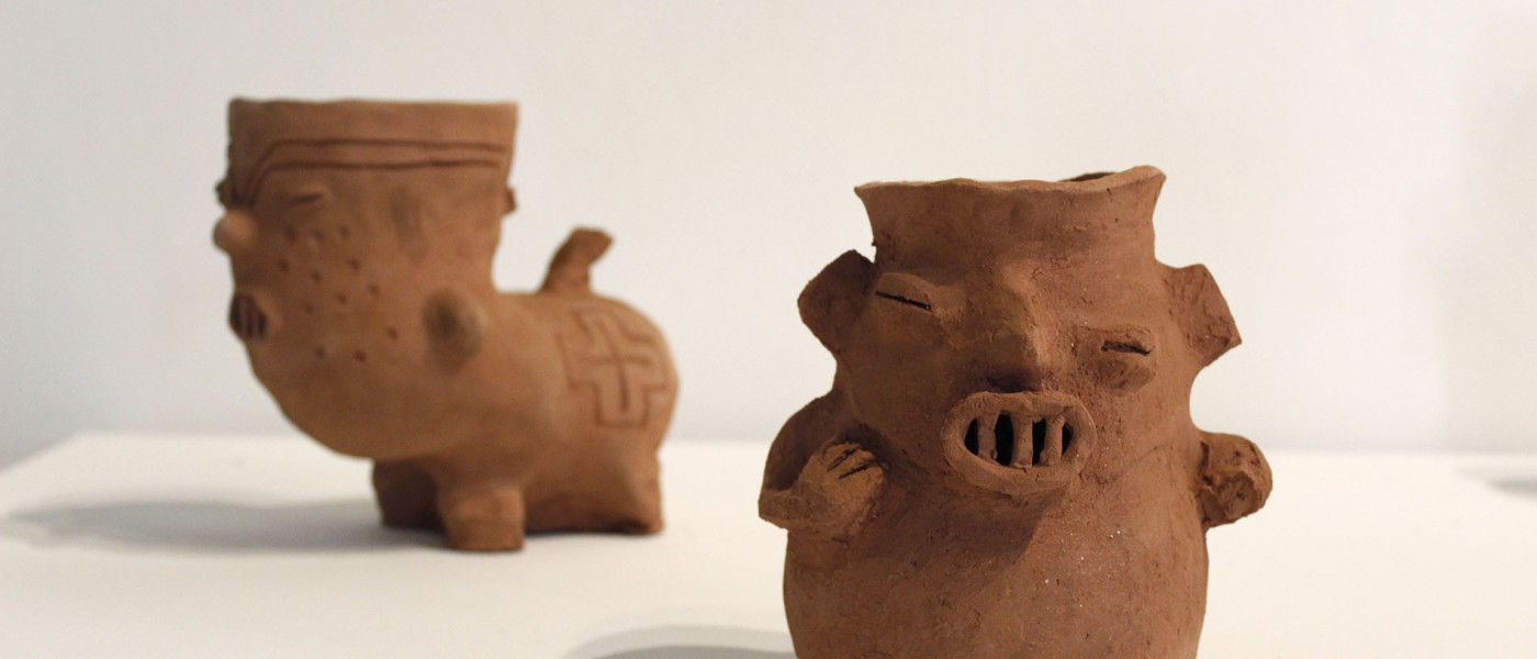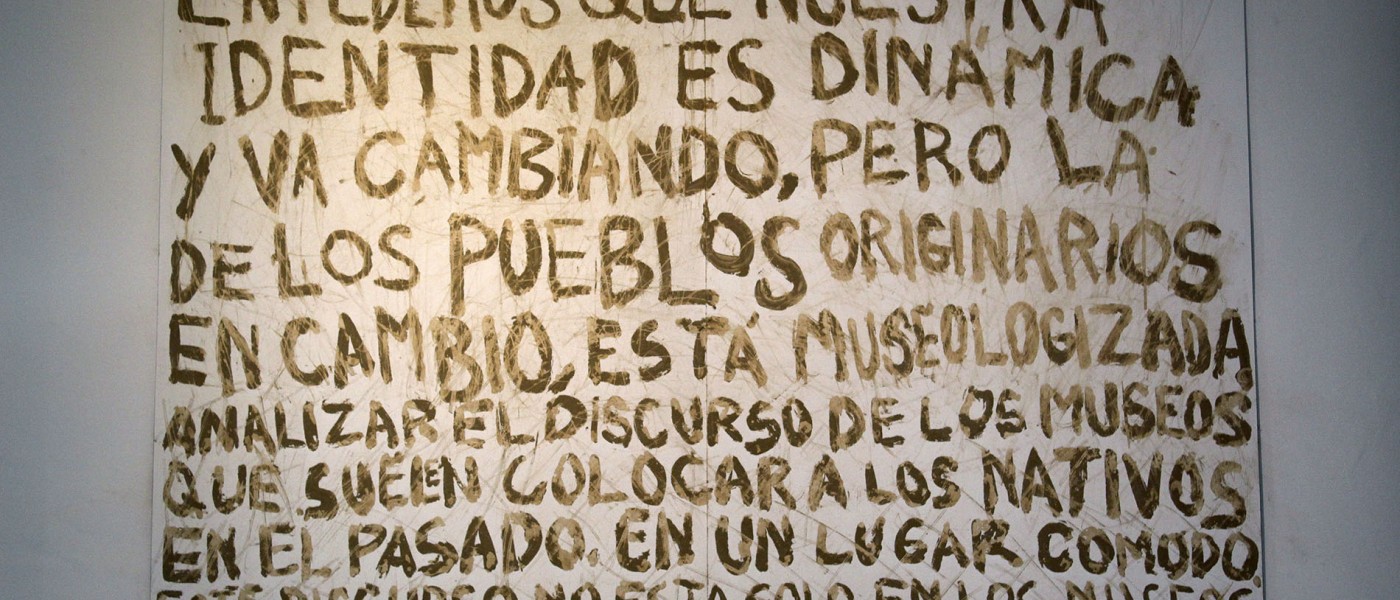 Las urgencias de nuestro presente ameritan volver sobre los procesos de conquista y colonización del territorio americano. ¿Qué mecanismos de dominación perviven a lo largo de nuestra historia? ¿Cómo mirar este legado y nuestro patrimonio para entender mejor nuestro presente? Proponemos aquí un diálogo entre distintas producciones de jóvenes artistas y con piezas procedentes de la colección del Complejo Museográfico Provincial Enrique Udaondo. La lectura contemporánea planteada por Garcilazo, Poblete, Colin y El Bondi Colectivo se genera a partir de sus atentas y críticas reflexiones de documentos prehispánicos, de tradiciones iconográficas y del estilo narrativo de los diferentes pueblos nativos americanos. Estas piezas, desde las más antiguas a las más recientes, portan historias de disidencia y resistencia de las civilizaciones sometidas y de los cuerpos racializados. Las imágenes se actualizan, potenciando su capacidad de interrogar las crisis del presente en su imbricación con la opresión que fundó el Nuevo Mundo. A partir de las lentes propuestas, el acervo de culturas originarias del Udaondo permite este diálogo crítico. Los utensilios, herramientas y manufacturas, más allá de su valor arqueológico, ponen de manifiesto modos de vida que atienden a la armonía con el entorno y el cosmos, la búsqueda de la belleza cotidiana y el respeto a las tradiciones estéticas como elemento identitario. Frente al caos climático, consecuencia de las realidades extractivistas del capitalismo, la armoniosa forma de un cuenco encierra una cosmovisión que hace estallar nuestro presente abatido desde una memoria activa en la materia y en los cuerpos de quienes se reconocen como descendientes de los productores de estos objetos y de su lucha. Marina Aguerre, Florencia Qualina, Leandro Martínez Depietri