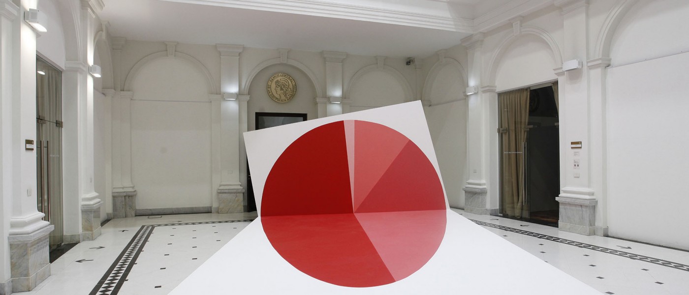 ¿Qué formas adopta la economía? ¿Cuál es su color? ¿Cómo percibir el universo de intangibilidades presente en un cálculo estadístico? El lenguaje visual de la abstracción y la potencia expresiva de las formas se encuentran en la base de las reflexiones de estos tres artistas. Ellos exploran, por ejemplo, la eficacia estética de un cálculo monetario en términos cromáticos y poéticos, o la rigurosa monumentalidad muda de emblemáticos edificios públicos; establecen así posibles analogías entre el sistema visual y el económico, quizás para recordarnos que, incluso detrás de la más sencilla acción humana, subyace, oculta, una forma. La exposición Las formas de la economía o la economía de las formas explora el poder simbólico de las formas con la esperanza de desnaturalizar la distancia que el lenguaje visual de la abstracción establece con nuestra realidad política, económica y social. Florencia Battiti