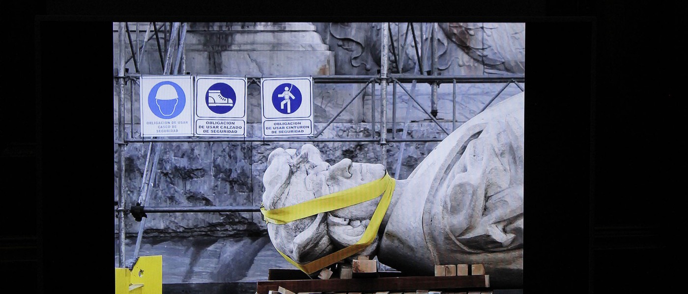 Visitas: De miércoles a domingo de 12 a 19hs ¿Cómo convertir a los monumentos en testigos parlantes de una transformación social? ¿Cómo se negocian consensos y disensos en la construcción de relatos colectivos? ¿Cómo abrir lugar a nuevas perspectivas? Fenómenos recientes otorgan pistas: escenas como la de los manifestantes que treparon el monumento a Baquedano en Santiago de Chile transformándolo definitivamente al convertir la efigie del militar en plataforma de protesta. Los cuerpos de piedra y metal son puestos en tensión por los cuerpos carnales del presente que, en sus tránsitos cotidianos por la ciudad, reconstruyen y reconfiguran el sentido de los relatos monumentales.
