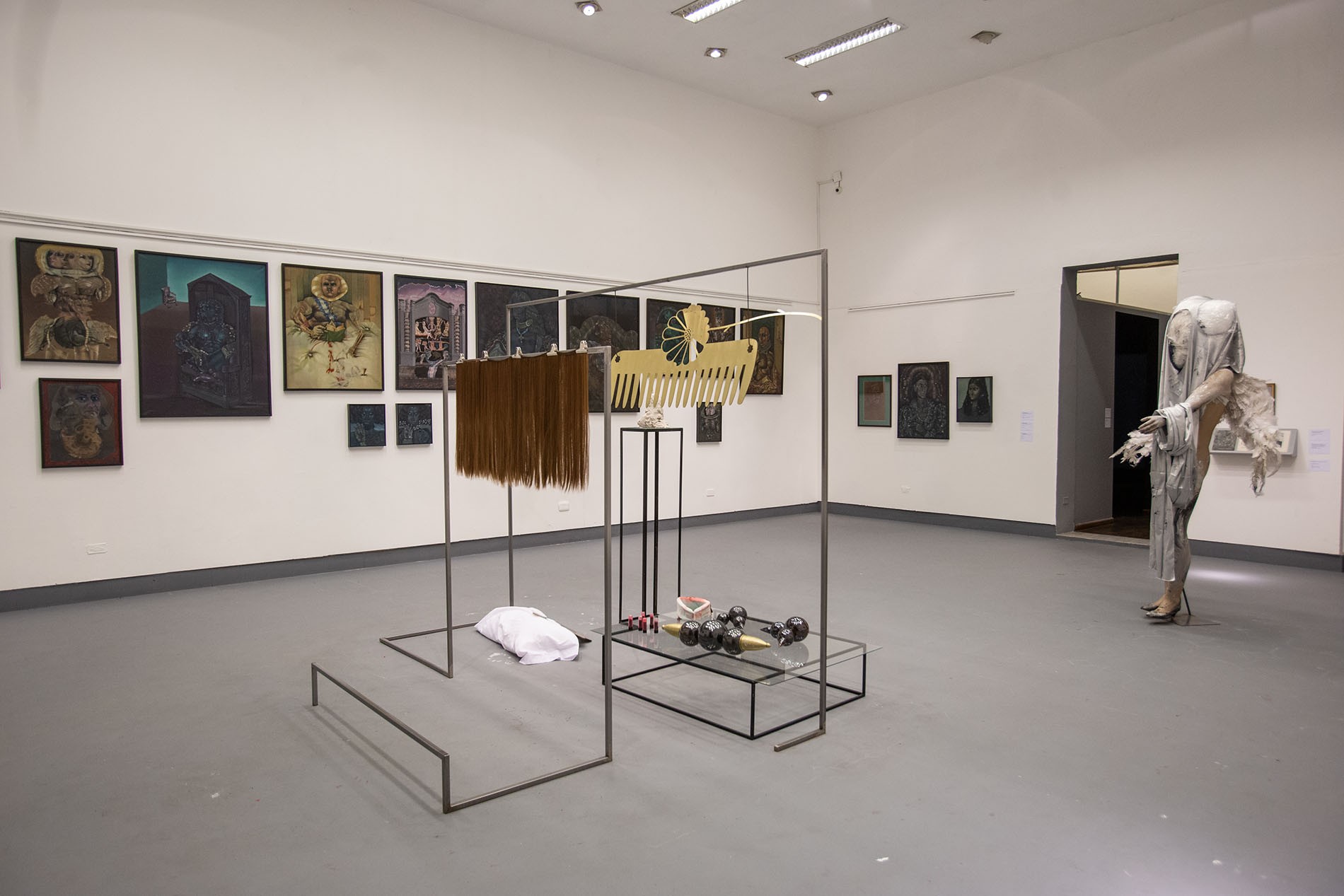 Es la época de oro del maestro, el elogio al varón, de una pintura severa y doliente a la cual le sucede una irrupción abrupta del arte contemporáneo, las investigaciones en el espacio, el cuerpo gozoso, los happenings, las nuevas identidades sexuales. Aquella irrupción se ha dado en llamar “parricidio”. Pero tales categorizaciones no admiten matices que reformulen y clarifiquen. Este proyecto pretende permeabilizar aquellos rótulos mediante una muestra retrospectiva de la artista y docente Myriam Holgado (1936-2014) y su puesta en diálogo con producciones contemporáneas de artistas jóvenes. La figura de Holgado ha sido un tanto opaca para la historiografía local de las últimas décadas. Por esto, resulta importante hacer una relectura de su obra que no redunde en la neofiguración y el realismo social, sino en la hibridación de los cuerpos vanidosos, en lo queer, lo pomposo y festivo, ampliamente desarrollado en algunos de sus años más prolíficos. A la vez que rastrear las incipiencias y tránsitos hacia una producción que retoma ciertos gestos posibilitados por las investigaciones del conceptualismo. Desde 1956 hasta su muerte, Holgado participó en numerosas muestras individuales y colectivas en la Argentina, Bolivia, México, Perú, Estados Unidos y Alemania. En 1976 se exilió en México junto a Francisco Fernández, su esposo y crítico de arte, tras ser expulsada de su cargo en la Universidad Nacional de Tucumán por el gobierno de facto. Con la vuelta de la democracia, recuperó su labor docente, lo que permitió el surgimiento de Taller C. Pero al poco tiempo se trasladó a Buenos Aires, donde continuó produciendo con escasas exhibiciones y retomó su labor docente en la Escuela Prilidiano Pueyrredón-IUNA hasta su muerte. Holgado se erige como una especie de mito marginal, clave para pensar la transición de esta escena hacia las poéticas contemporáneas de una forma no abrupta, no “de la nada”, no “parricida”.