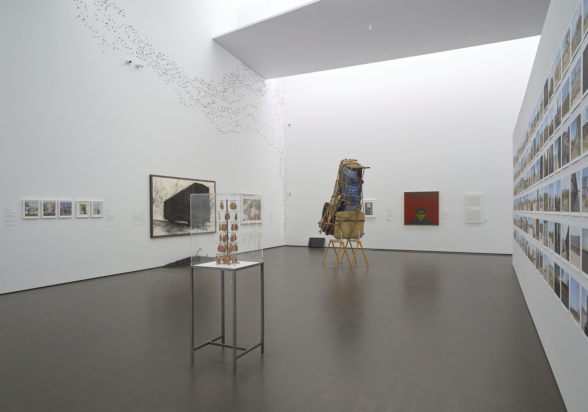 Inauguración 21 de noviembre Colectividad reúne obras que emplean diversos materiales y técnicas para activar un sentido de comunidad que exceda los límites del tiempo, el espacio y los medios. Las obras que ocupan la primera mitad de la galería, muchas de las cuales se produjeron de forma colaborativa, son prueba de movimientos comunitarios interculturales que utilizan materiales de gran carga histórica y personal. Estos trabajos exploran los aspectos performativos de las relaciones colectivas, como el saco de boxeo con flecos, que transforma los motivos culturales en referencias emblemáticas. En otra sección, los artistas buscan trascender las nociones tradicionales de parentesco haciendo patente la multiplicidad y permeabilidad de los vínculos familiares. La fotografía de seis paneles de Dawoud Bey presenta otro grupo de obras, que se apropia de los estereotipos visuales de grupos marginalizados y los subvierte para transformarlos en representaciones positivas. Todos estos objetos exploran qué significa la colectividad para la sociedad contemporánea y forjan lazos entre artistas, espectadores y comunidades de todo el mundo. Cartografías A menudo, artistas contemporáneos han examinado las características naturales de nuestro planeta, así como las transformaciones que en este ejercen las intromisiones humanas, para registrar y discutir asuntos medioambientales y socioeconómicos que enfrenta el mundo entero. Orientadas conceptualmente, ya sea por la recopilación de datos, perspectivas topográficas o bien mapas, las obras aquí expuestas ahondan en sus temáticas desde enfoques diversos y en una variedad de medios. Los artistas reflexionan sobre cuestiones interconectadas como el cambio en los índices de población, los impactos de la arquitectura y el urbanismo sobre los modos de vida, la indagación de los espacios públicos y privados, las políticas de desplazamiento de comunidades y el cambio climático. En conjunto, han creado la narrativa de un mundo que se debate frente al cambio físico con mensajes tanto de esperanza como de advertencia que debe ser escuchada