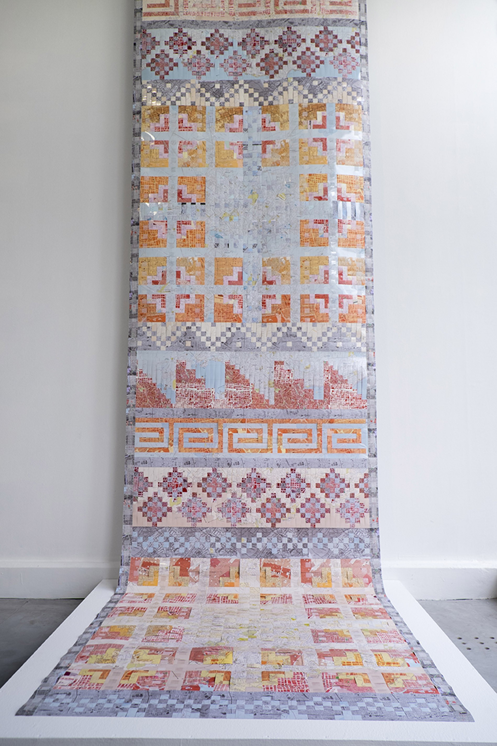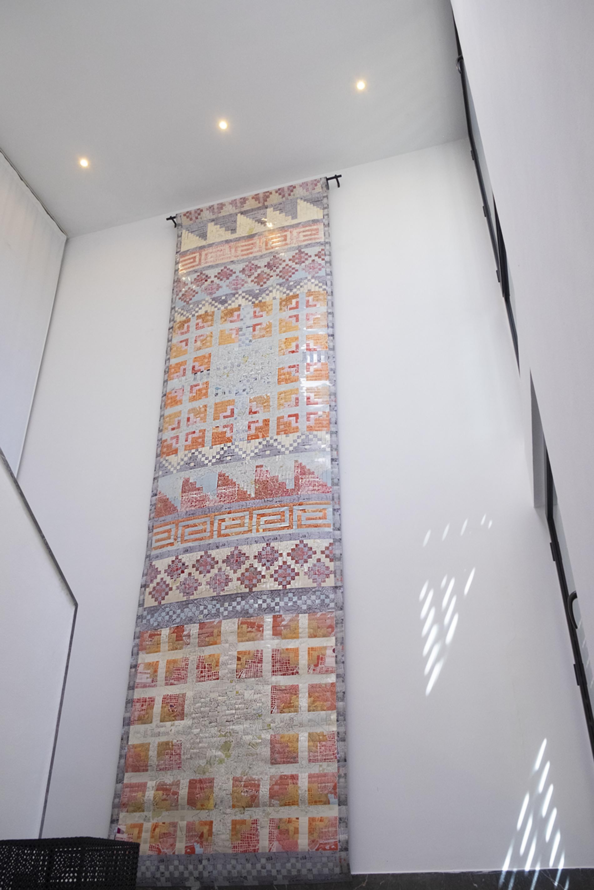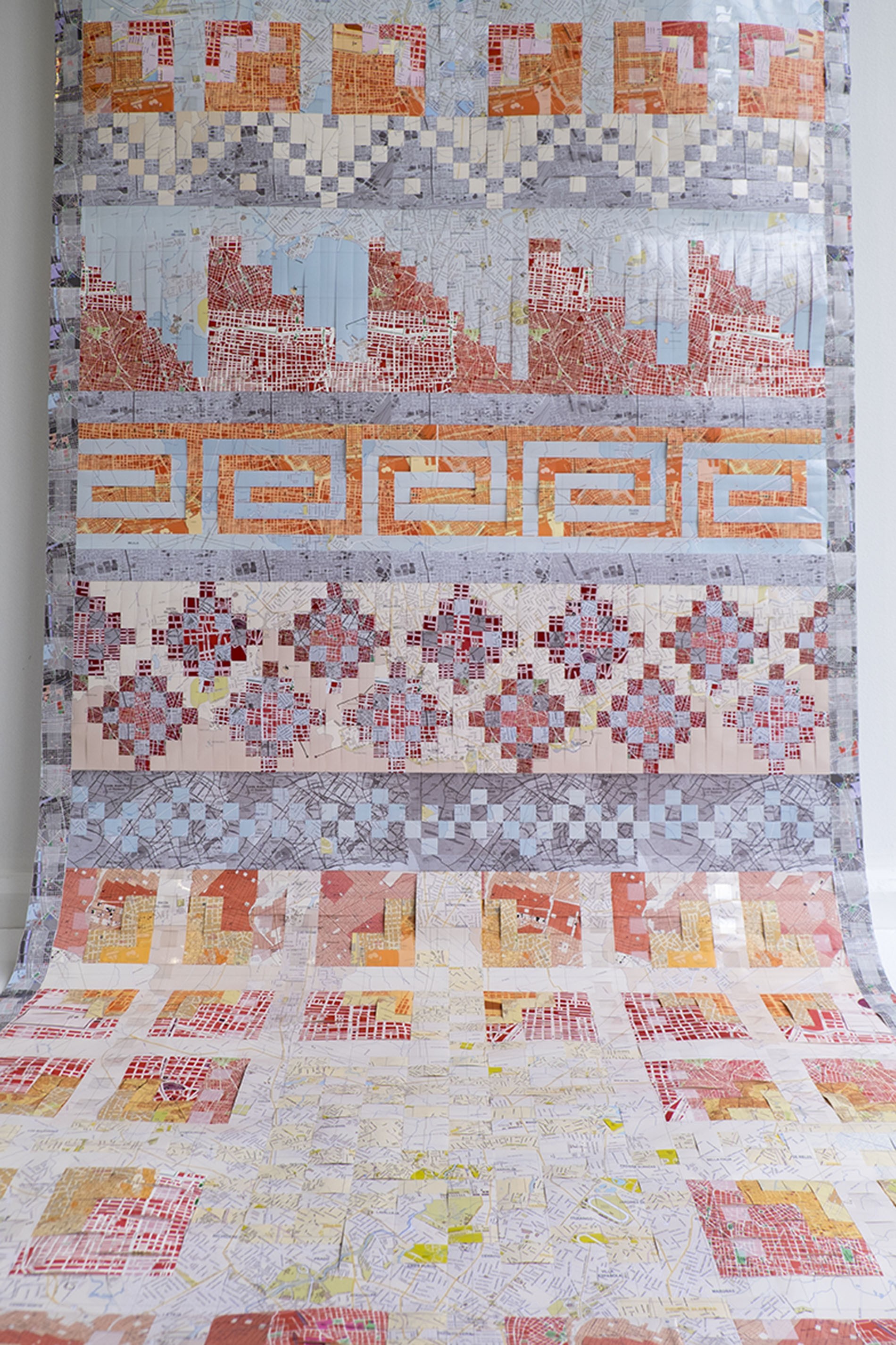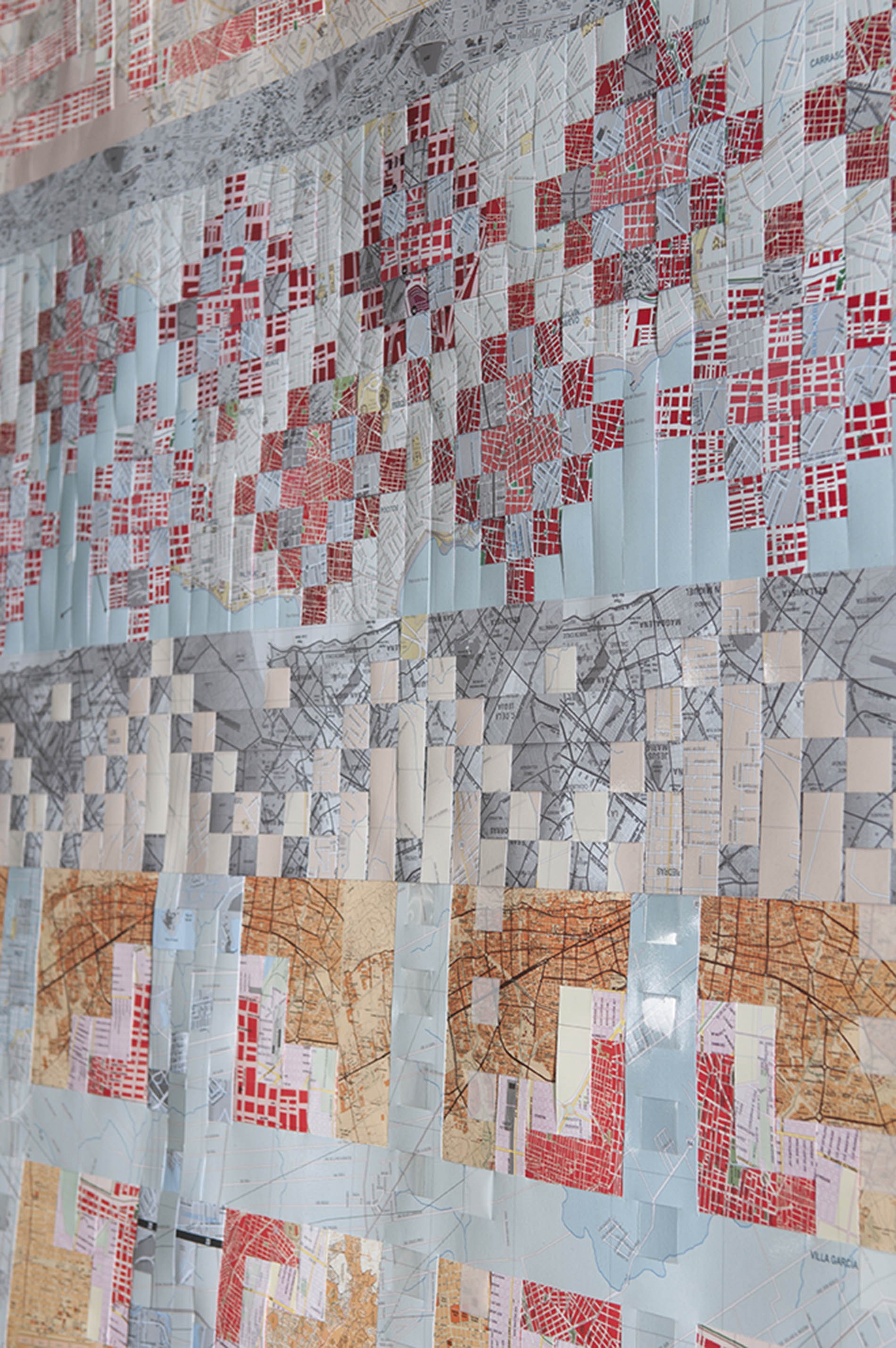 En el marco de su colaboración con la segunda edición de BIENALSUR, el Musée d'Art Contemporain Africain Al Maaden (MACAAL) acogió un proyecto de residencia de Paola Monzillo, cuya práctica artística se hace eco del programa de exposiciones que se desarrolló en la institución sobre la materialidad en el arte contemporáneo. Tapiz, huellas en el territorio consiste en un tapiz hecho a mano con mapas de ciudades latinoamericanas. Los diseños aluden, por un lado, a la iconografía utilizada en los textiles precolombinos y, por otro, al diagrama morfológico urbano derivado de los discursos dominantes, la apropiación de las conquistas culturales y los mitos sobre nuestros propios orígenes e identidad.