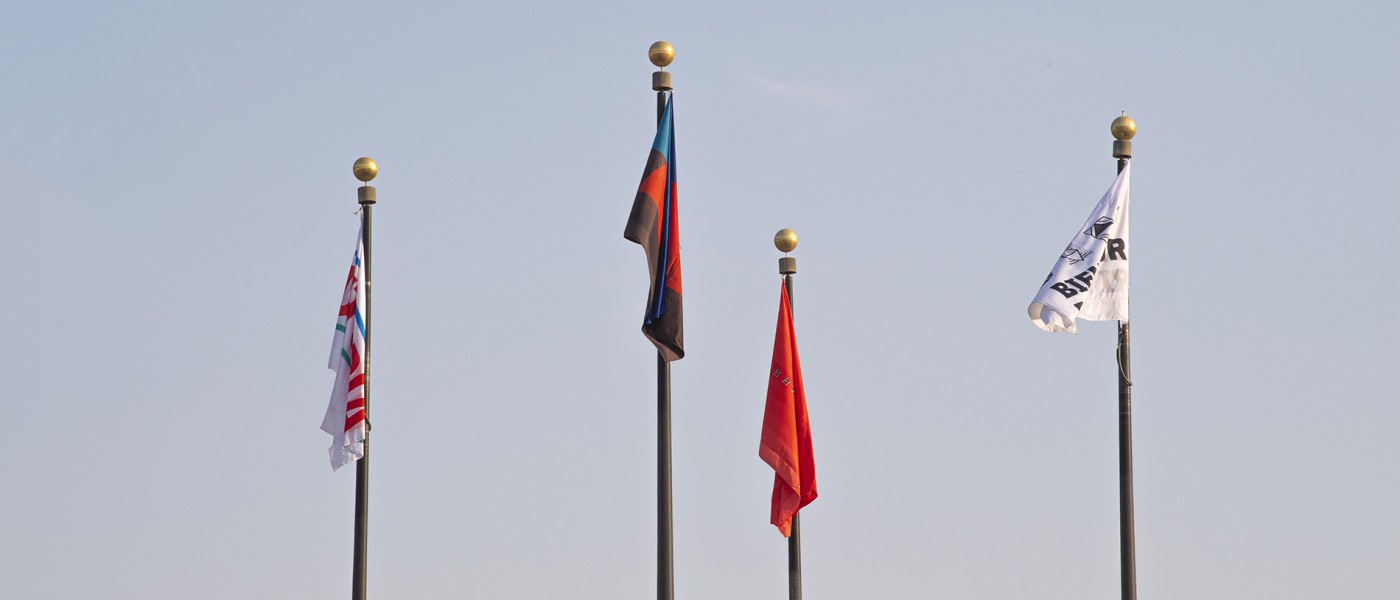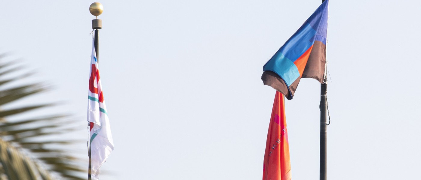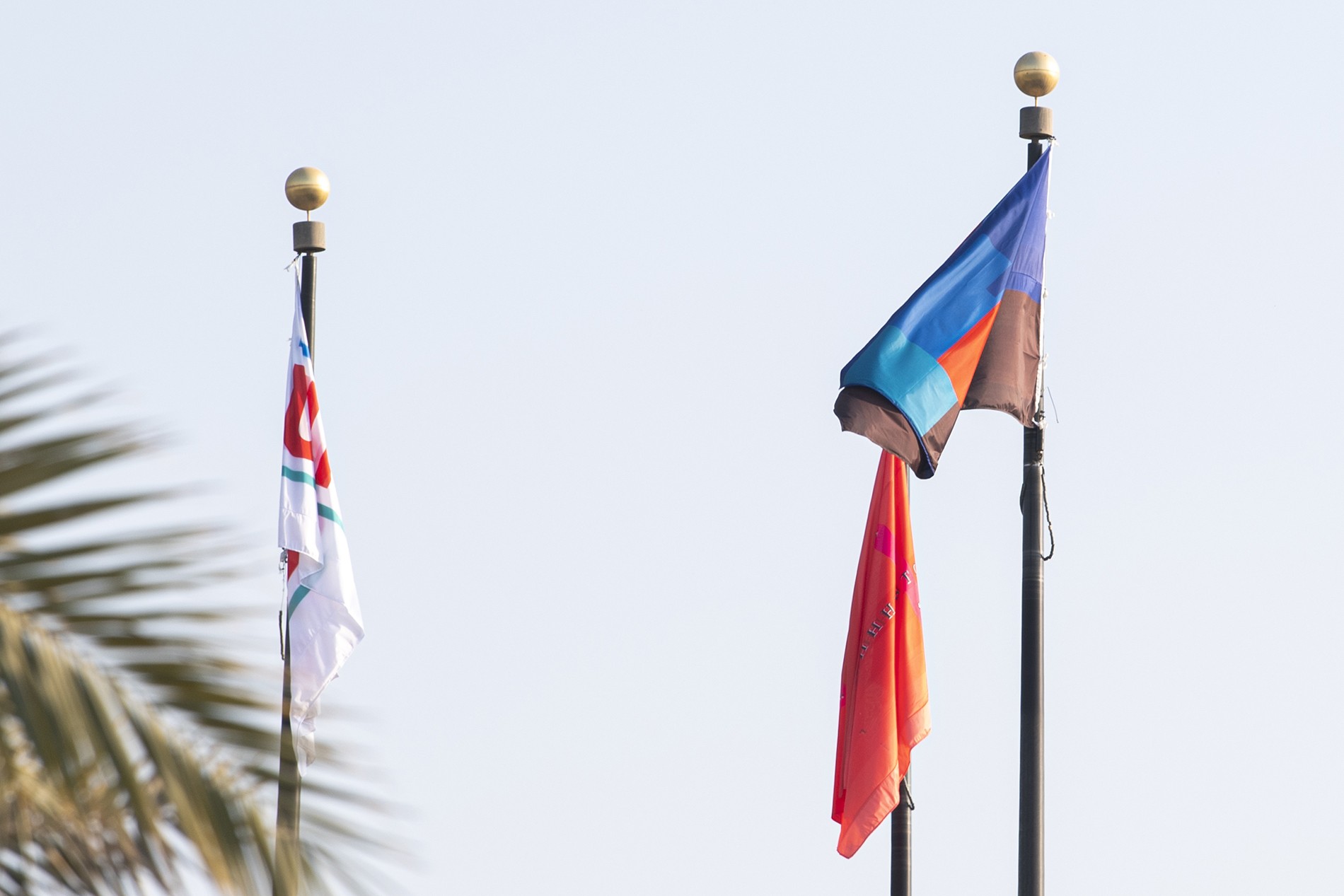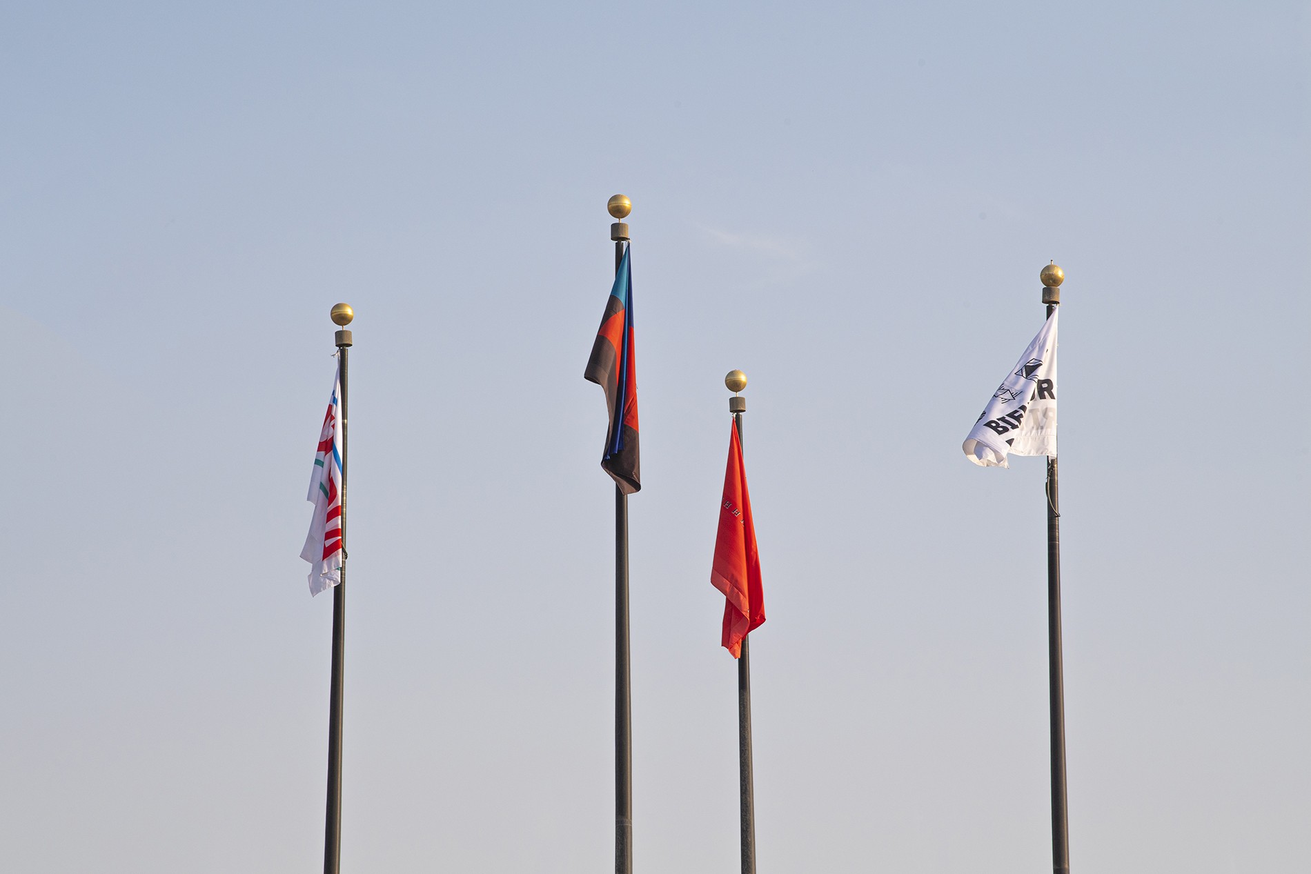 A la entrada del Barrio Diplomático tres banderas imaginarias ondeando de Christian Boltanski, Magdalena Jitrik y Voluspa Jarpa introducen la idea de nuevas identidades posibles que surgen del mundo artístico.