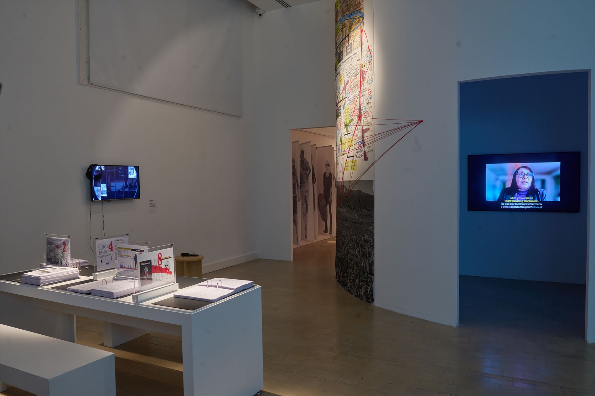 Sindemia es un proyecto multimedia que incluye vídeos, piezas musicales, instalaciones, cartografías, animaciones, documentos, informes, testimonios, fotografías, pinturas y objetos. Es el resultado de un proceso colaborativo de equipos de mujeres artistas e intelectuales con distintos saberes, tanto científicos como humanistas.