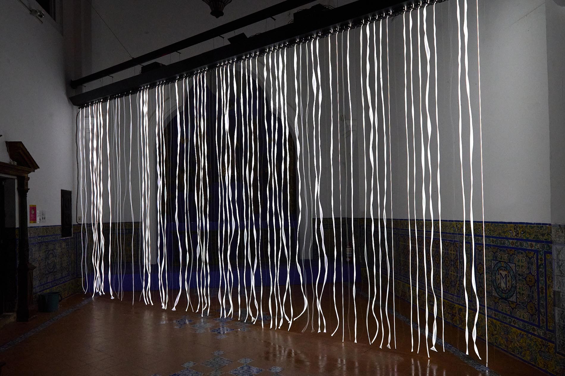 Visualizar sonidos, darles corporeidad, sentirlos en el cuerpo como vibraciones infraaudibles forma parte de las experiencias que este proyecto de instalaciones pensado por el equipo curatorial de BIENALSUR para el Museo de Arte Hispanoamericano Isaac Fernández Blanco propone al visitante.