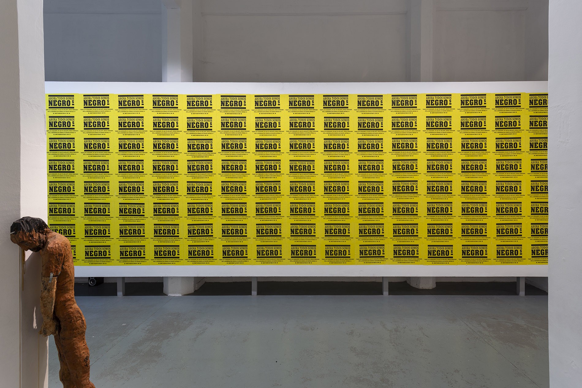 Si el diccionario en tanto libro y objeto contiene y, sobre todo, define semánticamente todas las palabras de un idioma, ¿dónde se alojan las palabras cuyos sentidos no ingresaron a la rigurosidad de la definición o a las reglas de la conjugación, pero permanecen fuertemente adheridos a los usos de la lengua? La pregunta intenta llegar a una etimología, no tanto como origen radical sino como estado de cambio, transformación y mutación endémica en la que viven las palabras. Frente a este estado del lenguaje, la exposición reconoce un universo de sentidos alojados en otro diccionario, el oculto e invisible, el subterráneo, el impar. Un diccionario que no presenta una estructura analítica y perpetuada en un orden de la A a la Z, sino que se desarrolla bajo la forma de un gas sin bordes, sin forma, que se esparce, por momentos se concentra y, por otros, se disipa hasta olvidar significados pretéritos. Haciendo uso de esta estructura abierta y cambiante, aquí se exponen algunos de los regímenes que habitan en la ideología del lenguaje. Estos operan sobre algunas palabras haciendo que sean prohibidas o, lo que es peor, autocensuradas por un mutismo social esparcido como un perfume suave. En contrapartida, la palabra negro se presenta como proposición política de su raíz histórica, es decir, en una cadena de sucesos que hacen que los eufemismos moreno, trigueño, mulato ocupen el lugar de un sinónimo que no hace más que remarcar su presencia.