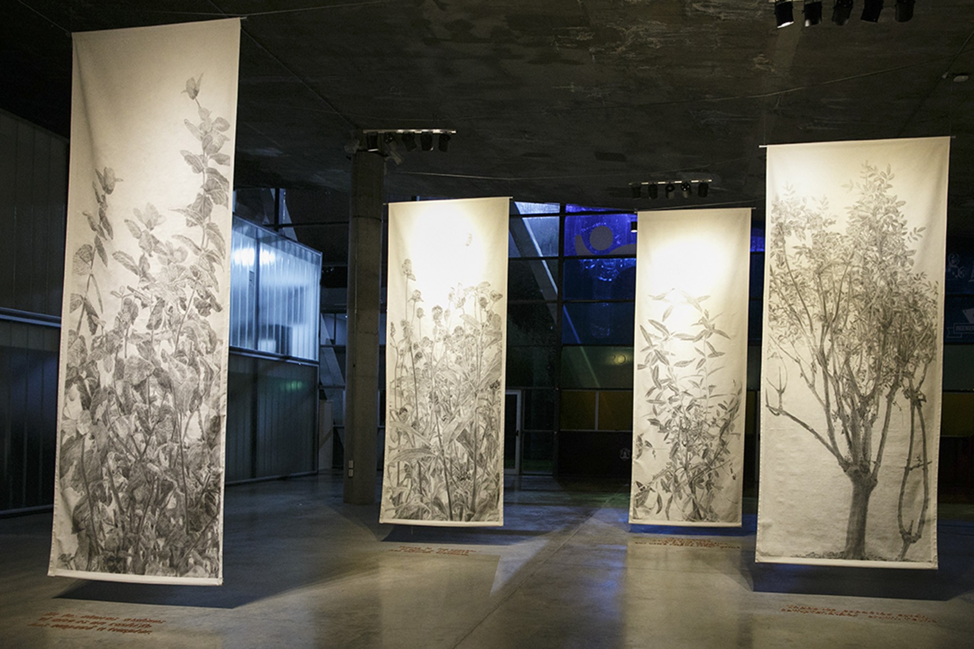 La materialidad de las obras que ahondan en estas realidades revela una temporalidad detenida, femenina y ancestral. Las densas tramas de los tejidos, el imperceptible movimiento de un rostro frente a la cámara, las marcas repetidas del lápiz sobre telas de gran tamaño, la inmovilidad de un cuerpo recostado durante horas implican permanecer en la reiteración de acciones catárticas y gestos reparadores. Cada obra cuenta una historia colectiva: lejos de centrarse en la experiencia individual, las artistas que integran esta exposición dan cuenta de la vida de otras mujeres y de otras historias, exponiendo ausencias e invisibilidades que reclaman un espacio de escucha
