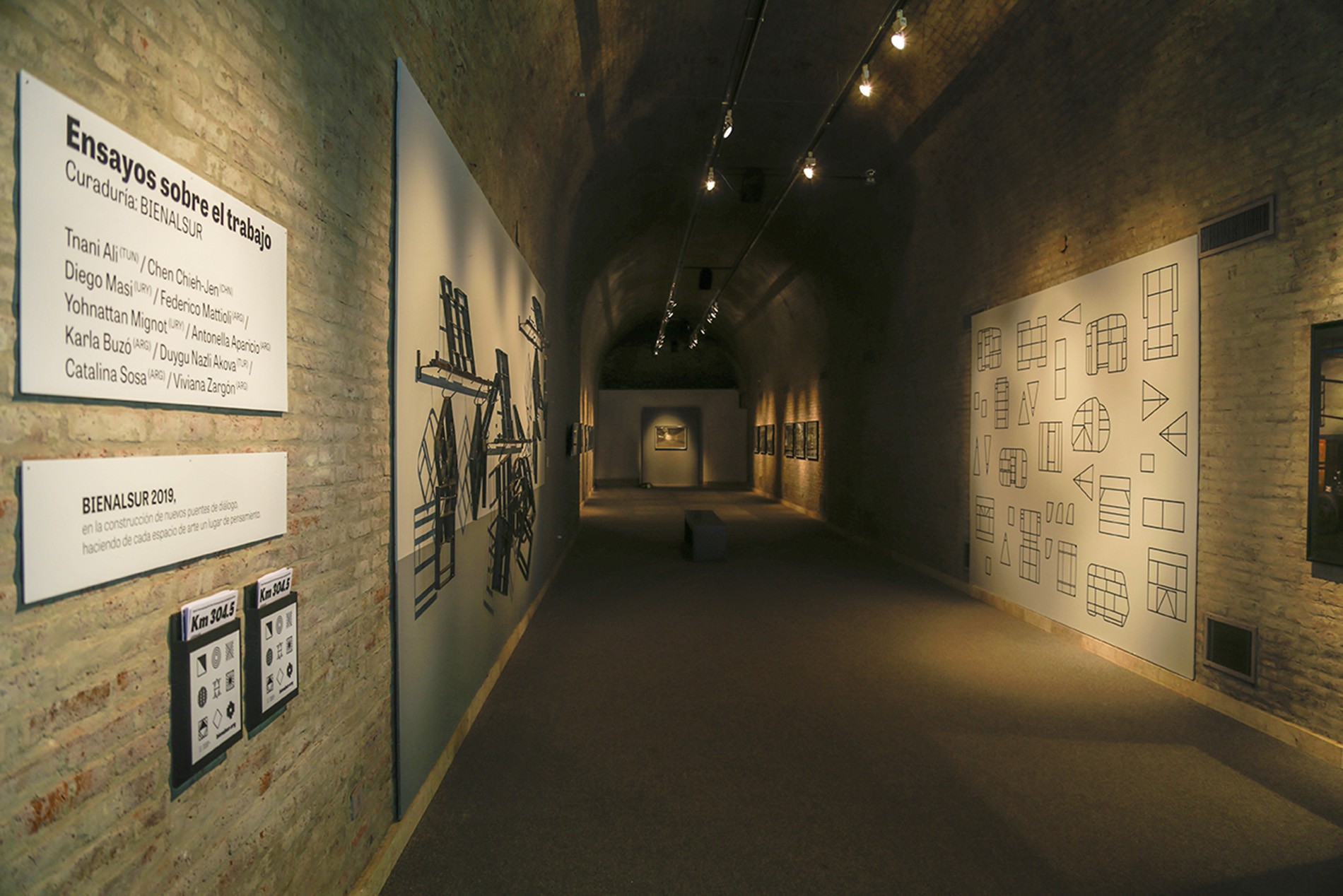 Ruidos y silencios de hombres y de máquinas intervienen en la aproximación del público con las diversas obras que constituyen este recorrido. Silencios y ruidos –procedentes de diferentes regiones y latitudes– apelan a la memoria colectiva fraguada a lo largo de la historia de la humanidad: el trabajo como producción, como posibilidad de desarrollo, como actividad que enaltece. Sin embargo, algo atraviesa fantasmagóricamente este concepto… Ruidos y silencios se asocian a sueños y emprendimientos frustrados, luchas, realidades y ficciones, atravesados tanto de manera individual como colectiva. Así, presencias y ausencias dialogan en videos, instalaciones y fotografías. Las piezas expuestas refuerzan discursos conocidos o miradas cargadas de ironía, revisitan historias y proponen ensayar otras posibles memorias del trabajo: aquellas aportadas por los visitantes de estos túneles.