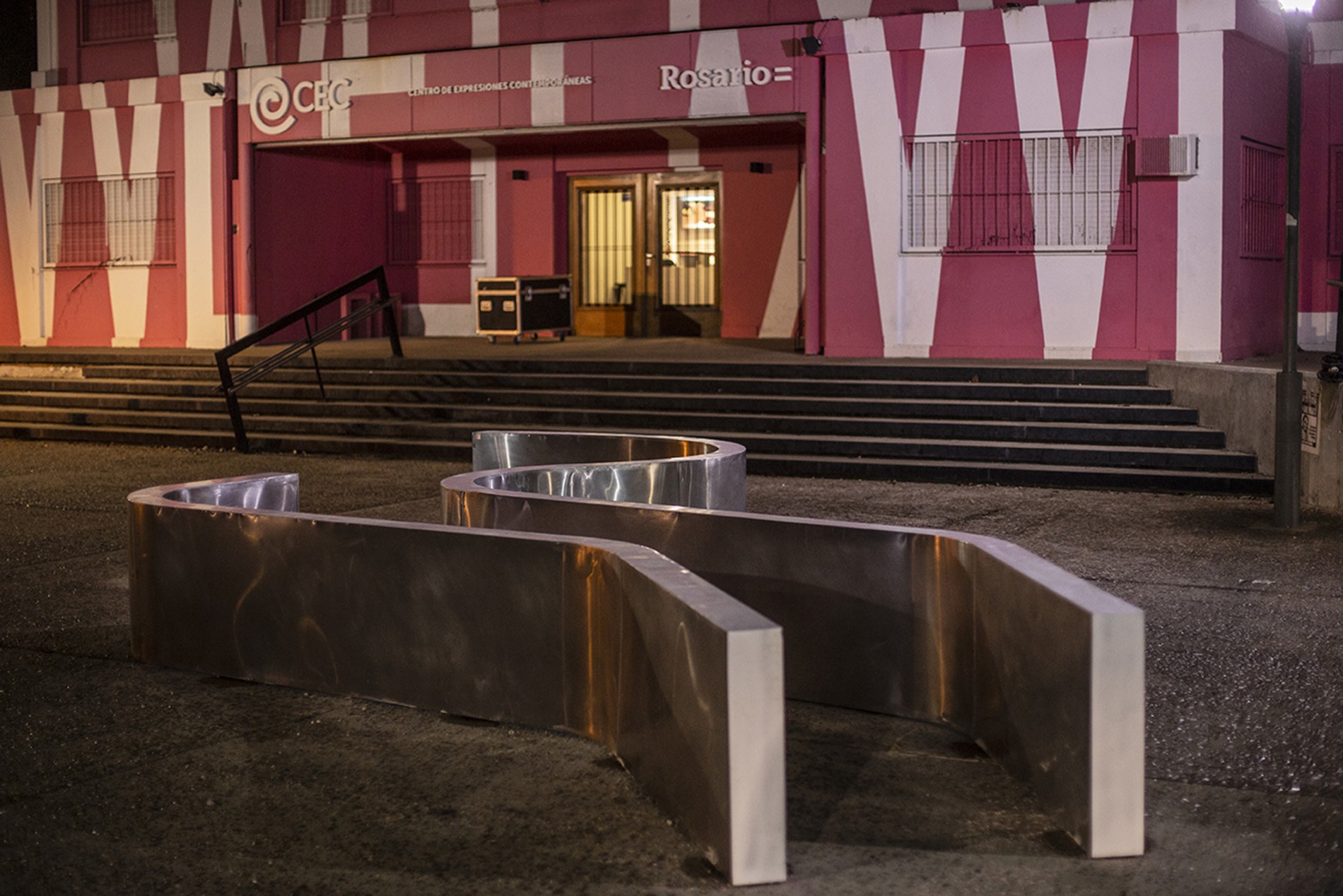 En 2013, los bocetos se publican en el libro Noemí Escandell editado por el Museo Castagnino+macro junto con una muestra antológica. Un año después, Curvilíneos finalmente se construye en acero inoxidable para la 10ª Semana del Arte de Rosario y se emplaza en la explanada del Centro Cultural Roberto Fontanarrosa. En esta oportunidad la obra encuentra un nuevo entorno y se emplaza en el ingreso al Centro de Expresiones Contemporáneas.